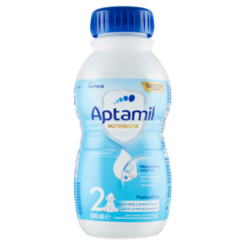 Come preparare il latte per il tuo bambino La tabella è indicativa, il dosaggio può essere modificato secondo il parere del Pediatra, in base alle esigenze del lattante. Età: Dal 6° mese compiuto | Quantità ml: 230 | Biberon 24 ore: 4 Età: Dal 7° mese compiuto al 12° | Quantità ml: 230 | | Biberon 24 ore: 3-2 Avvertenza: seguire con cura le indicazioni; una preparazione e modalità di conservazione inadeguate potrebbero comportare un rischio per la salute del lattante. 1. Prima della preparazione accertarsi che l'ambiente in cui si opera sia pulito, lavarsi ed asciugarsi bene le mani e sterilizzare biberon, tettarella e ghiera. 2. Agitare la bottiglia e versare nel biberon la quantità di latte necessaria. 3. Scaldare il prodotto fino a circa 40 °C, prima di darlo al lattante verificare la temperatura sul polso. Avvertenza importante: Il latte materno è l'alimento ideale per il lattante ed è raccomandato come alimento esclusivo fino al 6° mese e come componente lattea di una dieta equilibrata durante lo svezzamento e anche dopo l'anno di vita. Quando manca o non è sufficiente, è consigliabile utilizzare un latte di proseguimento esclusivamente dietro consiglio del Pediatra. Aptamil Nutribiotik 2 è idoneo per il lattante solo dopo il compimento del 6° mese, non deve essere utilizzato come sostituito del latte materno nei primi 6 mesi di vita ed è da intendersi come parte di un'alimentazione diversificata. L'inizio dello svezzamento deve avvenire solo seguendo le indicazioni del Pediatra.