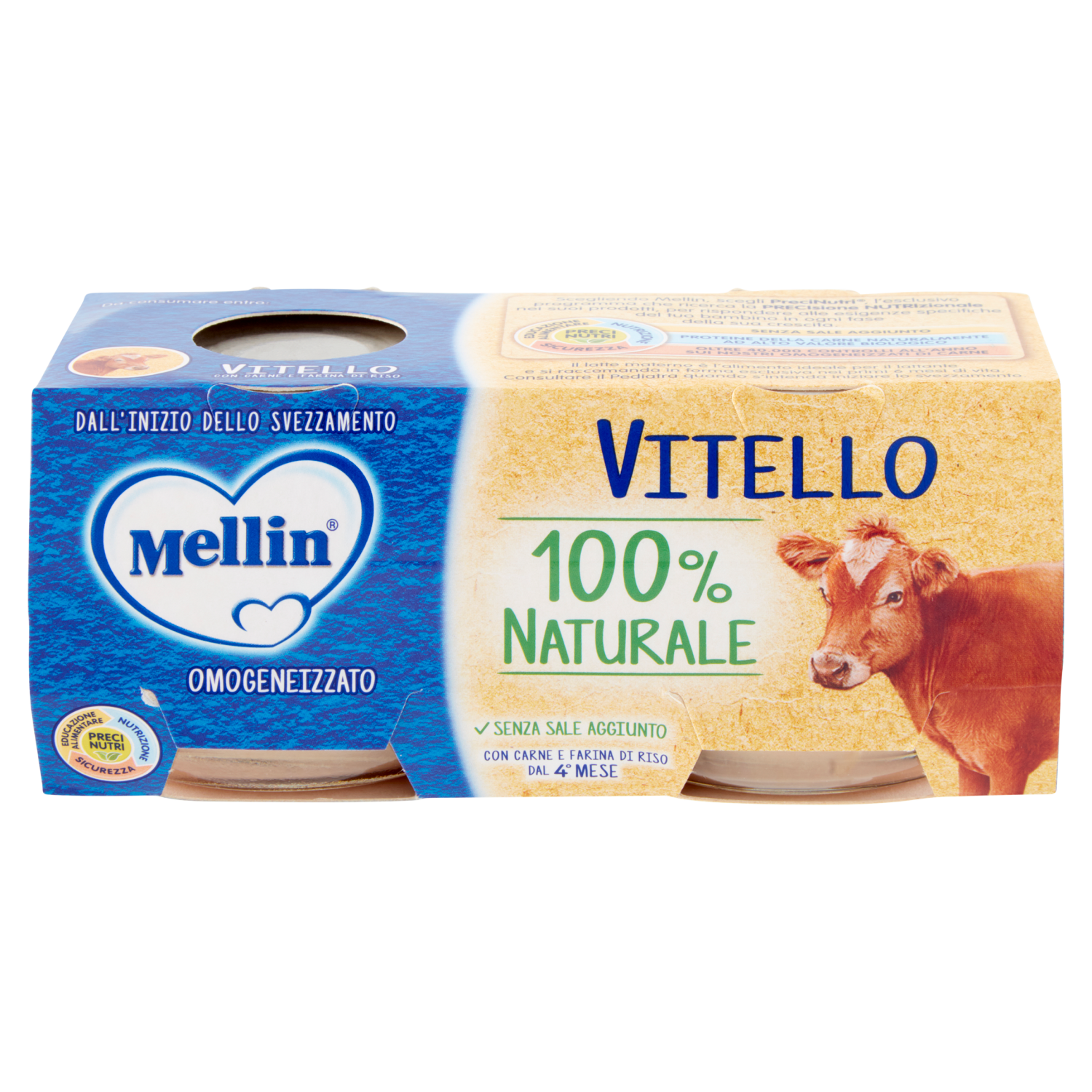 Mellin 100% Naturale è: - Bontà al naturale Senza sale aggiunto Senza aromi - Con ingredienti di origine naturale, selezionati e preparati con cura - Senza conservanti e coloranti come per legge Scegliendo Mellin, scegli PreciNutri, l'esclusivo programma che ricerca la Precisione Nutrizionale nei suoi prodotti, per rispondere alle esigenze specifiche del tuo bambino in ogni fase della sua crescita. Precinutri - Educazione Alimentare, Nutrizione, Sicurezza Senza sale aggiunto Proteine della carne naturalmente ad alto valore biologico Oltre 40.000 controlli all'anno sui nostri omogeneizzati di carne Il latte materno è l'alimento ideale per il lattante e si raccomanda in forma esclusiva nei primi 6 mesi. Consultare il Pediatra quando s'intenda iniziare lo svezzamento.