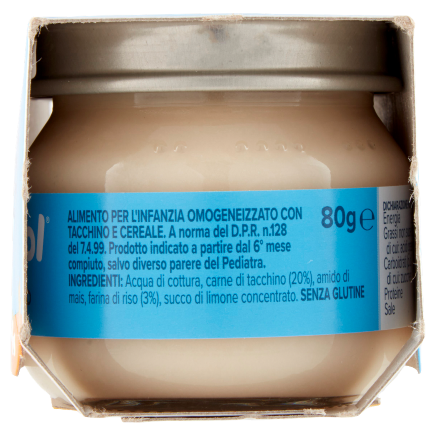 Alimento per l'infanzia omogeneizzato con tacchino e cereale A norma del D.P.R. n.128 del 7.4.99.