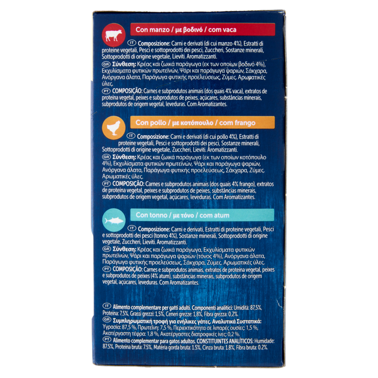 Modalità d'uso e razione giornaliera raccomandata: Per un gatto di 4kg, versare in una ciotola e servire una busta al giorno in abbinamento ad altri prodotti completi Purina. Per il benessere del tuo gatto, rispetta le linee guida di alimentazione. Servire a temperatura ambiente. Lasciare sempre a disposizione acqua fresca e pulita. Questo prodotto è un alimento complementare con un elevato contenuto di umidità, che permetterà al tuo gatto, mentre si nutre, di assumere parte della razione di acqua giornaliera raccomandata.