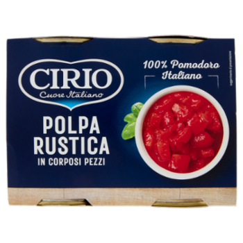 La Polpa Rustica Come fatta in casa Ci sono profumi e sapori che evocano tutto il piacere delle cose fatte in casa: quei piatti preparati con ingredienti genuini, da mani esperte, e cucinati con amore, lasciando la pentola borbottare a fuoco lento. La Rustica Cirio racchiude tutte queste emozioni in una polpa speciale: corposi pezzi di pomodoro in una salsa densa che aderisce perfettamente alla pasta. L'ideale per quelle ricette in cui vuoi che il pomodoro si veda e si senta!