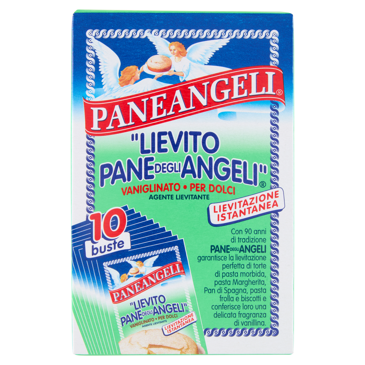 Pane degli Angeli va aggiunto per ultimo all'impasto e ben amalgamato. Metti subito nel forno già caldo e non aprire durante la cottura. Dose: 1 bustina per 500 g di farina.