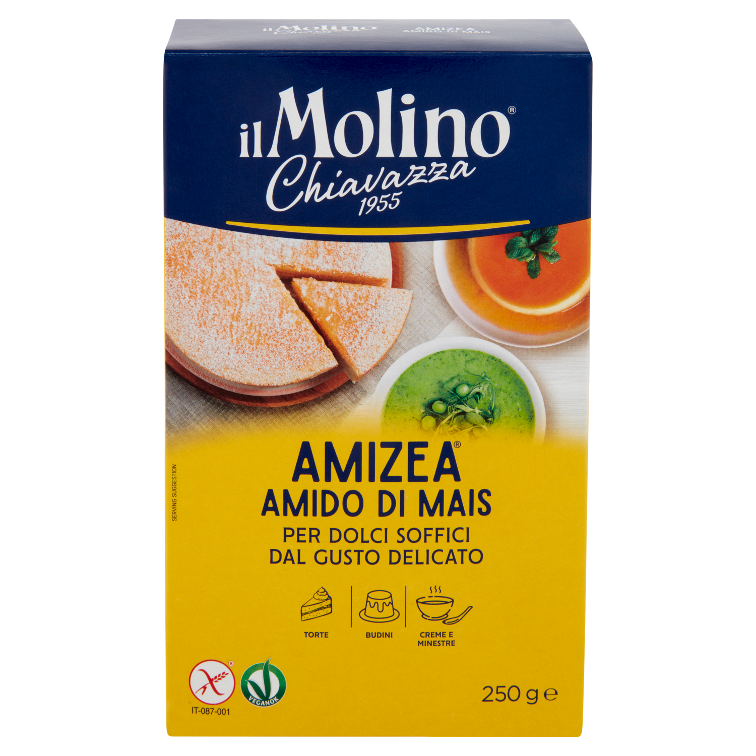 Consigli per l'uso L'amido di mais Amizea è un ingrediente indispensabile in cucina. Il suo gusto neutro non copre il sapore dei cibi, la sua elevata viscosità è particolarmente apprezzata in molte preparazioni domestiche. Può essere infatti utilizzato come addensante per creme, budini e cioccolate oppure per legare sughi, salse e minestre: è sufficiente aggiungerne 1-2 cucchiai. Dosaggio facile 1 cucchiaio raso = 10g di prodotto