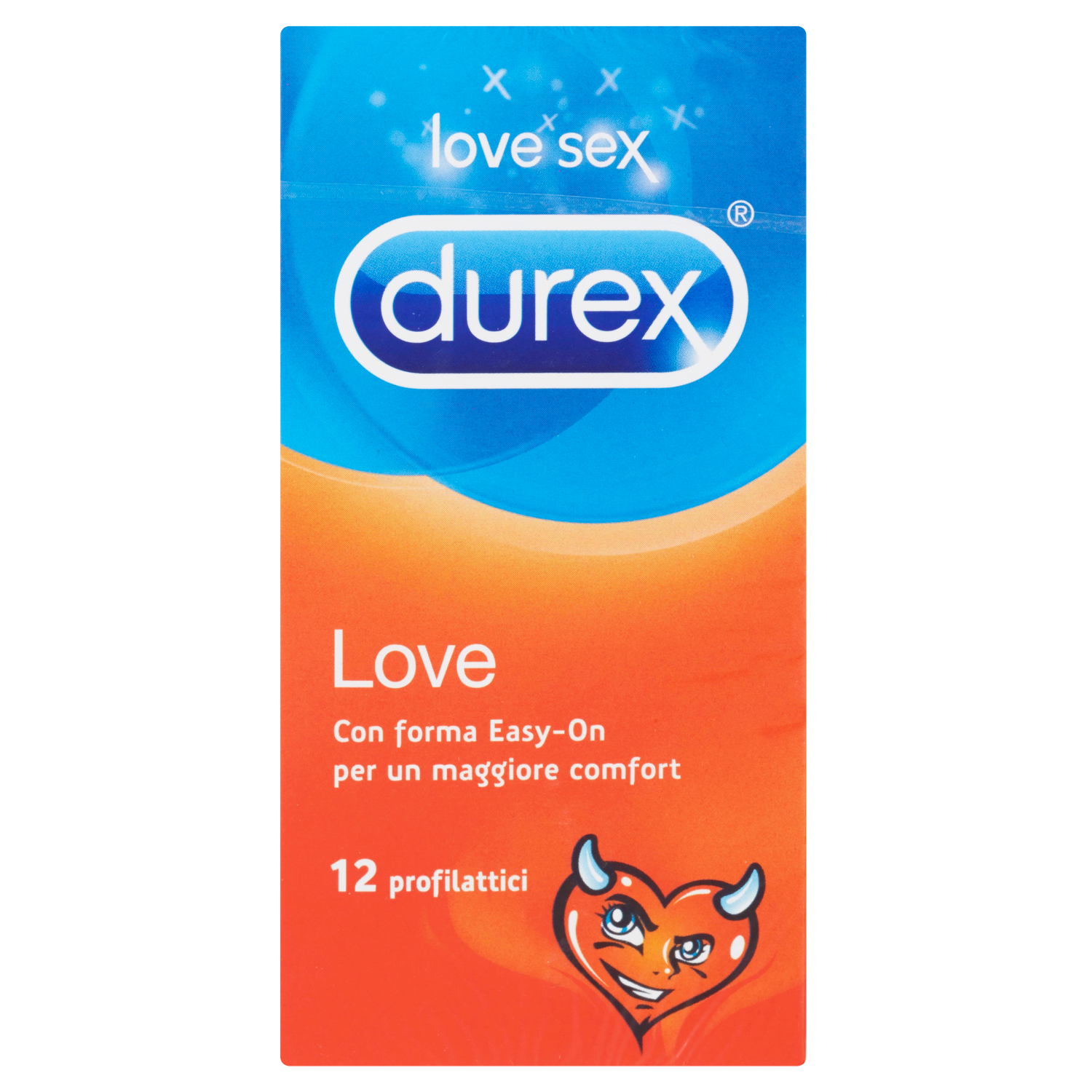 Love - Profilattici trasparenti e lubrificati in lattice di gomma naturale - Con forma Easy-On e serbatoio per maggiore comfort e vestibilità - Larghezza nominale: 52.5mm Forma Easy-On. Sviluppati tenendo a mente i tuoi bisogni. I profilattici Durex con forma Easy-On sono più facili da indossare e più confortevoli durante il rapporto. Buon odore. Lo speciale metodo di produzione dei profilattici Durex li rende più gradevoli all'olfatto.