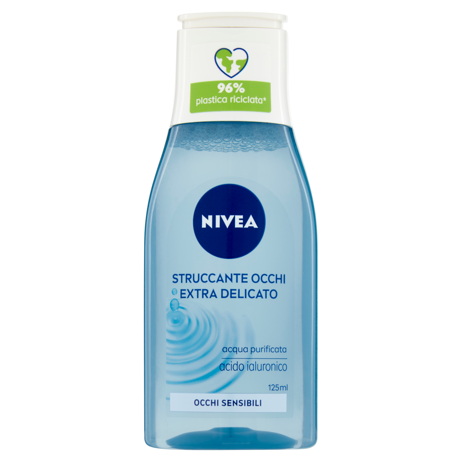 Il nostro Nivea Struccante Occhi Extra Delicato rimuove il make-up in maniera efficace ma delicata. - Formula vegana - *96% di materiale riciclato esclusi etichetta, tappo e inserto. www.nivea.it/sostenibilità Compatibilità cutanea dermatologicamente ed oftalmologicamente comprovata