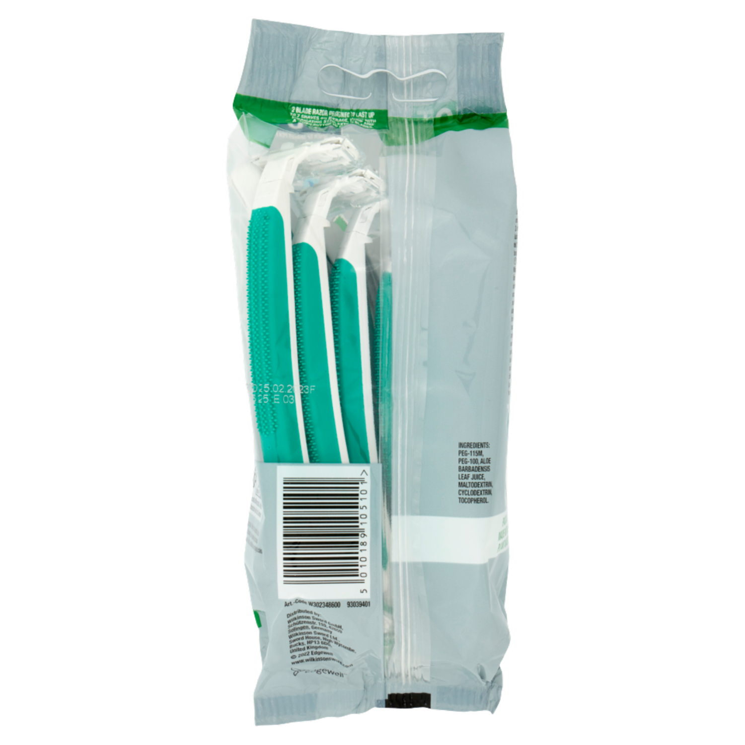 Rasoio a 2 lame progettato per durare in media fino a 7 rasature. Rasoio con striscia lubrificante, manico antiscivolo e un *tasto per pulire le lame.