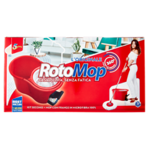 Centrifuga a pedale - Sistema salvaschiena Caratteristiche Oltre 500 frange in microfibra ad alto potere pulente Le frange di RotoMop, in 100% microfibra, garantiscono una pulizia perfetta su ogni tipo di superficie, anche senza detergenti. Agiscono sgrassando lo sporco più difficile senza graffiare: per questo RotoMop è adatto sulle superfici più delicate, come marmo e parquet. Due tipi di utilizzo: umido o bagnato Il nuovo dispositivo di centrifuga consente di controllare il grado di asciugatura delle frange. Centrifugando con 8 colpi di pedale, il mop risulta appena umido e si trasforma in un fantastico catturapolvere o può essere utilizzato per assorbire liquidi in eccesso sul pavimento. Centrifugando con soli 3 colpi di pedale, il mop è ottimo per il lavaggio. Casa pulita, senza fatica RotoMop, grazie al sistema Speciale "Salvaschiena", riduce il carico dei muscoli lombari e delle mani evitando in questo modo la stanchezza e i dolori fisici. I lavori domestici verranno svolti facilmente, velocemente, e in modo salutare, garantendo una casa pulita, senza fatica. Lo snodo di RotoMop può ruotare a 360° consentendo di pulire anche sotto ai mobili più bassi. Grazie alla nuovissima ghiera antischizzi, potrai centrifugare il mop anche vicino a mobili o pareti senza rischiare di bagnarli. Estrema facilità di ricambio del mop Il ricambio di RotoMop si sgancia con un semplice gesto del piede, senza doversi chinare e senza sporcarsi le mani. Una volta utilizzato, il ricambio può essere comodamente lavato in lavatrice a 30°.