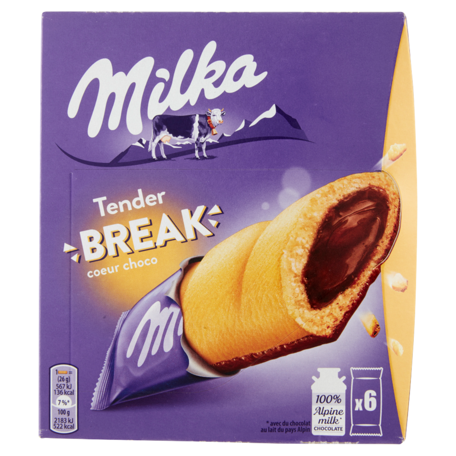 Un cuore cremoso al gusto di nocciola e cioccolato; Una tenera copertura di cioccolato al latte Delle Alpi e un delizioso biscotto croccante