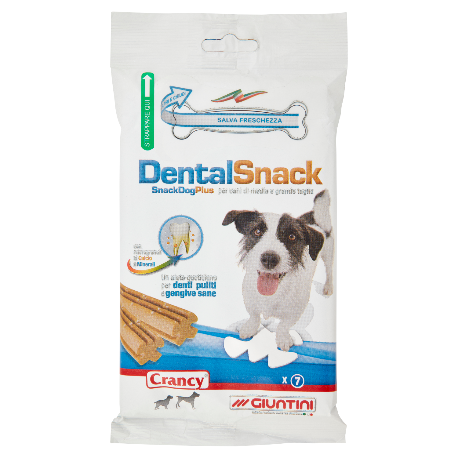 Dental Snack è un benificio "premio" per il tuo cane. Grazie alla delicata azione abrasiva dei microgranuli di calcio e minerali permette una buona pulizia dei denti ed un minor accumulo di tartaro. La sua consistenza lo rende un giocoso beneficio anche per le gengive.
