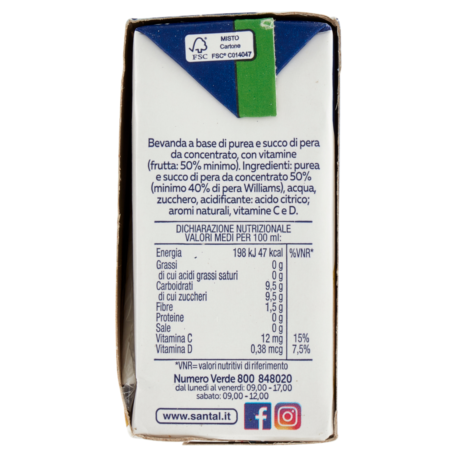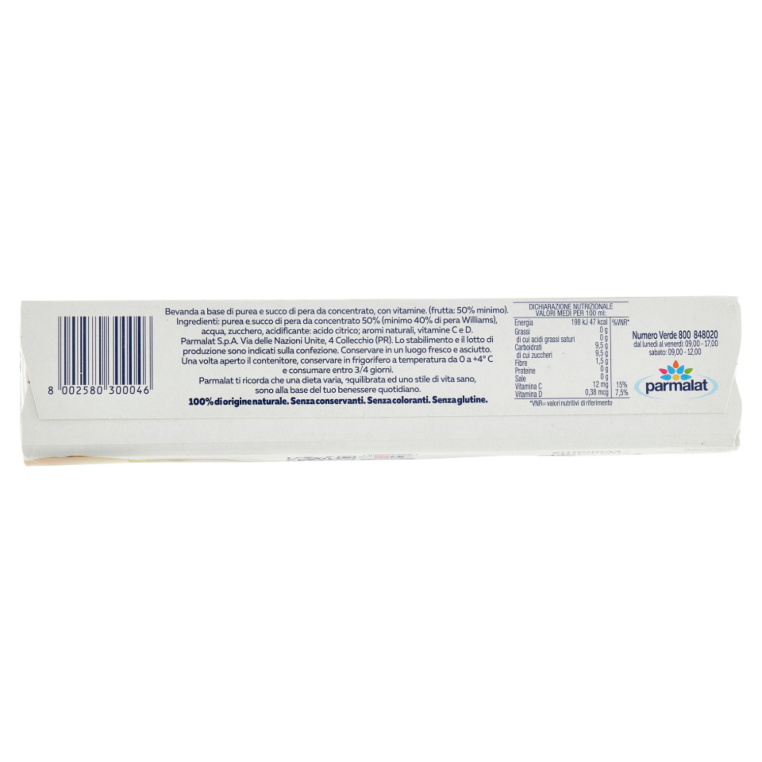 Bevanda a base di purea e succo di pera da concentrato, con vitamine. (frutta: 50% minimo)