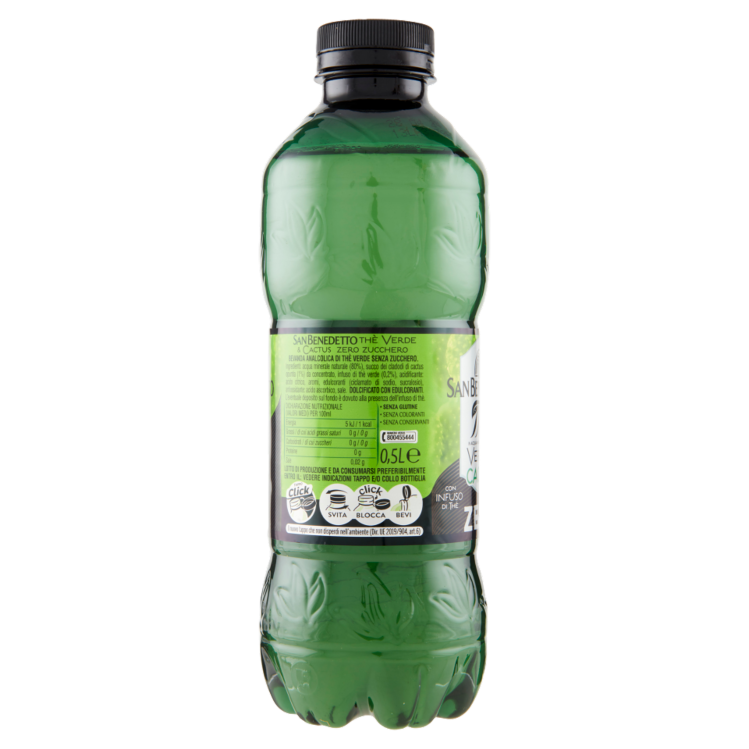 San Benedetto Thè Verde & Cactus Zero Zucchero - Pura acqua oligominerale - Tanto gusto - Con infuso di thè - Zero zuccheri - Senza glutine - Senza coloranti - Senza conservanti Tappo Click Svita - Blocca - Bevi Il nuovo tappo che non disperdi nell'ambiente (Dir. UE 2019/904, art.6)