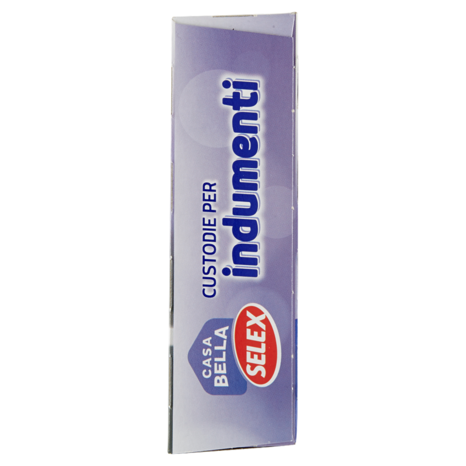 Avvertenze: Non risvoltare le custodie, mantenere il lato esterno non a contatto con i capi. Non idoneo per la conservazione di prodotti alimentari. Tenere lontano dalla portata dei bambini.
