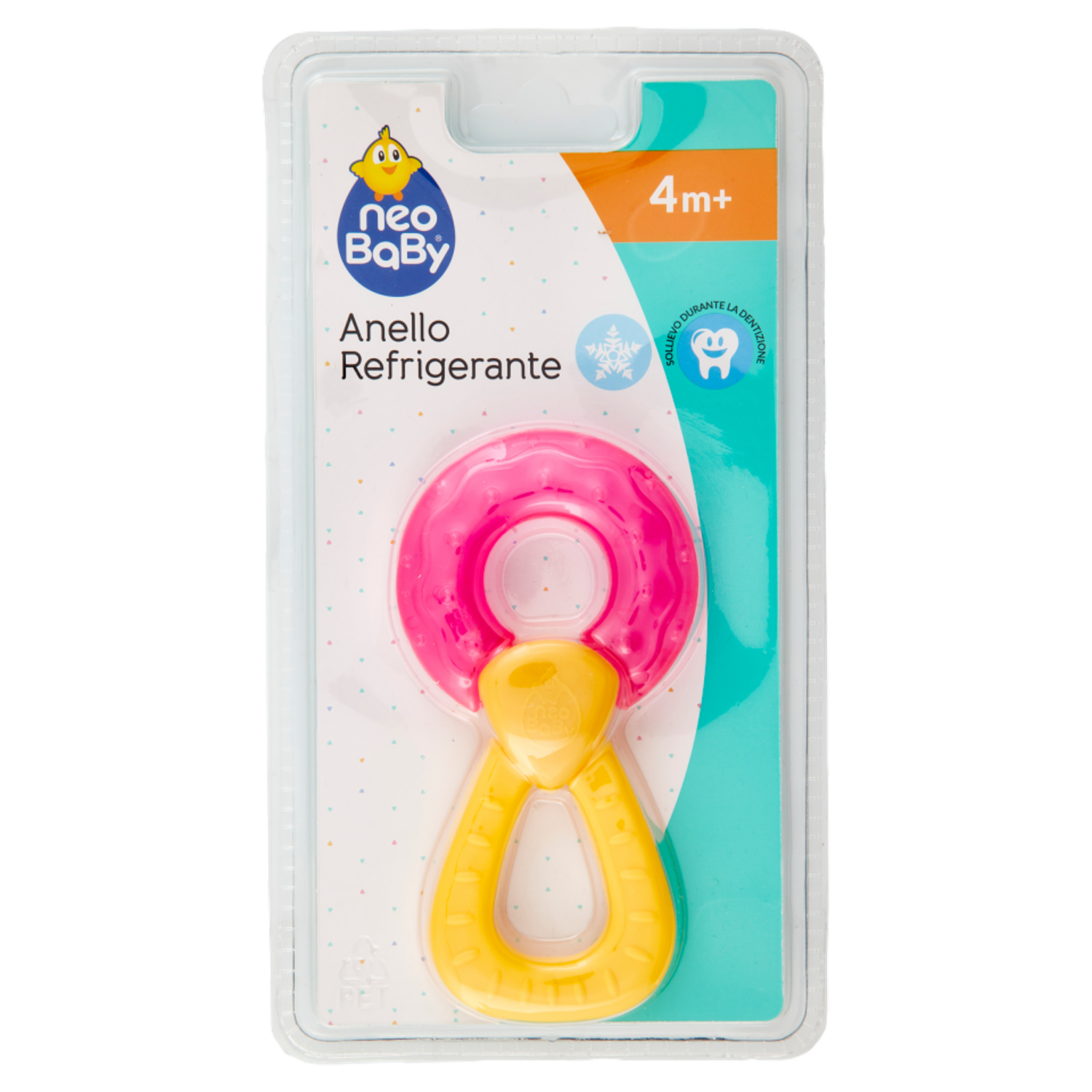 Forma ergonomica facile da impugnare. Contengono acqua sterile. Per un maggiore sollievo lasciare l'anello nel frigorifero prima di darlo al bambino. Raffreddare solo nel frigorifero. Non mettere nel congelatore.