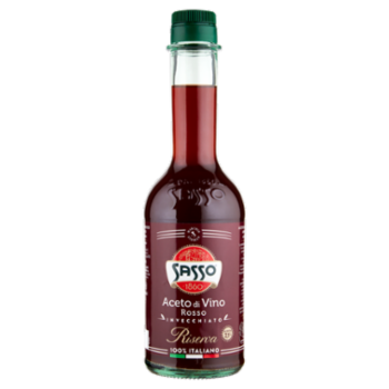 La nobiltà dei vini da cui deriva, l'accuratezza del processo produttivo, il prolungato invecchiamento e l'elevata acidità (7,1%) sono gli elementi che da sempre garantiscono la qualità dell'Aceto Sasso, fregiandolo del riconoscimento di Riserva. L'Aceto Rosso Sasso, prodotto solo con vini 100% italiani, matura il suo inconfondibile bouquet in tini di rovere e larice ed è caratterizzato da brillante limpidezza, colore rosso rubino, profumo intenso e armonico, gusto aromatico e vellutato.