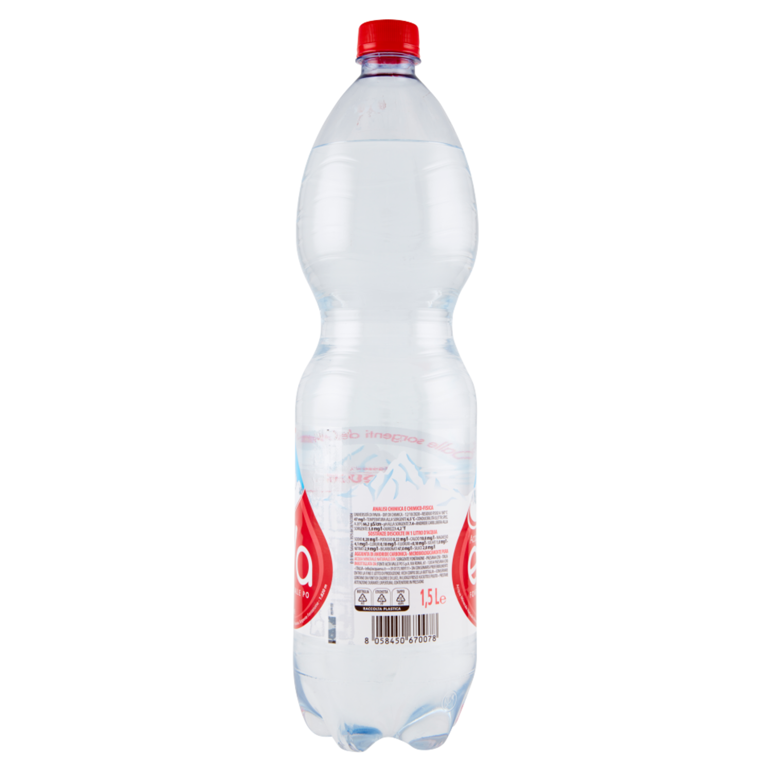 Aggiunta di anidride carbonica - Microbiologicamente pura Dalle sorgenti del Monviso Sgorga a 1.820 m Residuo fisso 47 mg/l Minimamente mineralizzata Eva nasce pura e leggera da una falda alpina incontaminata, a soli 6,5°C, con un residuo fisso di soli 47 mg/l. Sodio 0,3 mg/l Indicata per le diete povere di sodio È tra le acque con il minor contenuto di sodio al mondo, solo lo 0,00003%. Il basso tenore di sodio è importante per ridurre la ritenzione idrica e depurare i reni. Altezza 1820 m Nata dal Monviso Un'acqua così pura sgorga a 1820 metri, tra le vette del Monviso, in un territorio che è stato dichiarato Riserva della Biosfera dall'UNESCO. Riciclabile al 100% Tutte le parti che compongono questa bottiglia sono 100% riciclabili. Schiacciala sul lato lungo e non separare il tappo. Verifica come differenziare correttamente nel tuo Comune. Inquadra e scopri di più Apri la fotocamera, inquadra il codice ed entra nel mondo di Acqua Eva!