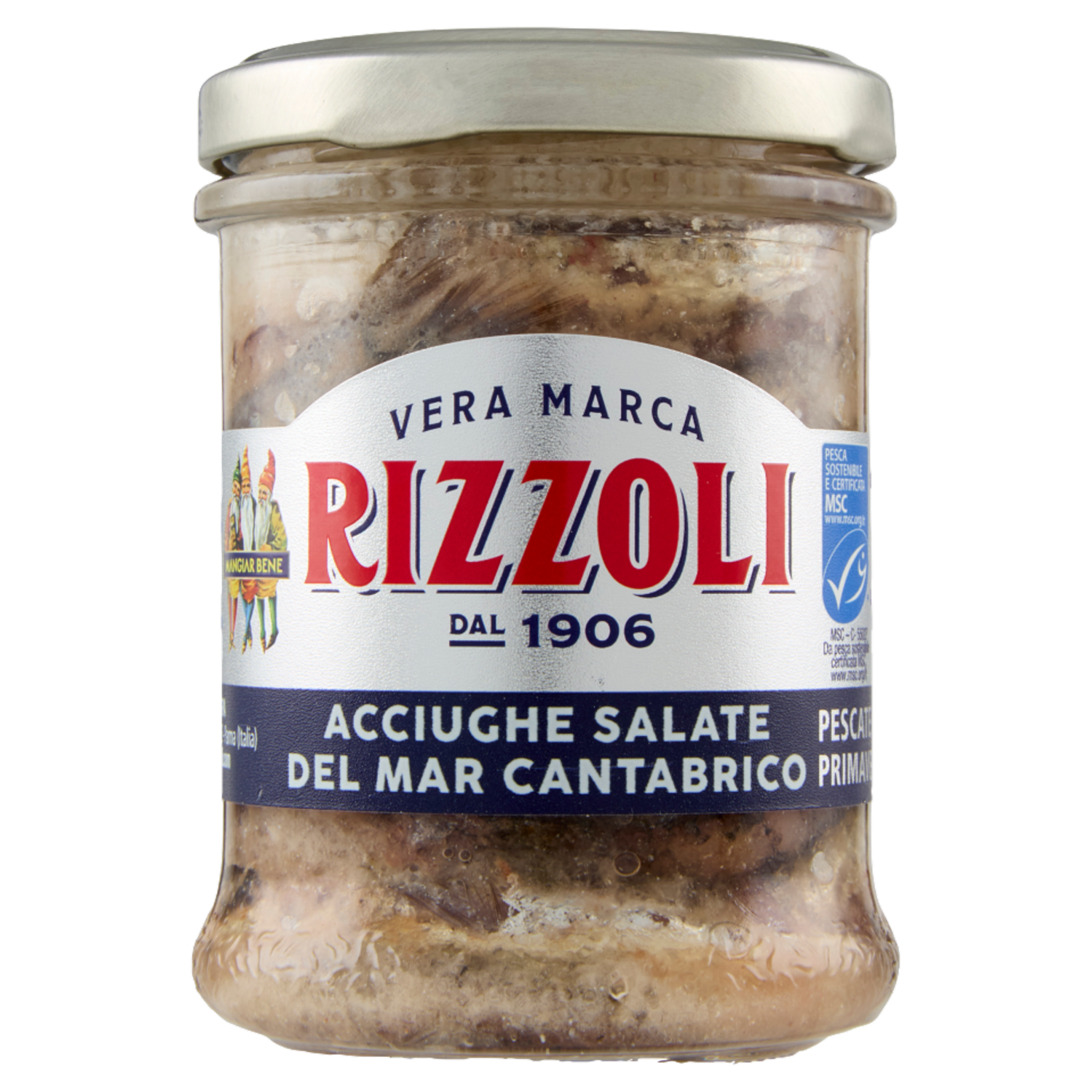 Un metodo di pesca responsabile e sostenibile Questo prodotto proviene da attività di pesca certificate da un organismo indipendente secondo lo standard MSC per una pesca ben gestita e sostenibile. www.msc.org/it Sua maestà l'acciuga del Cantabrico La pesca avviene solo in primavera lungo tutta la costa Cantabrica quando gli esemplari sono più grandi con carni morbide e compatte, lavorati a mano in giornata. Il marchio Tradizione Consapevole dal 1906 rappresenta la sintesi delle azioni e procedure Rizzoli Emanuelli in termini di: - Sostenibilità della pesca - Tracciabilità di filiera - Qualità del prodotto