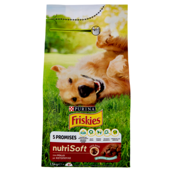 nutriSoft - 100% soft* PURINA FRISKIES Nutri Soft è un alimento per cani 100% completo e bilanciato, preparato con gustosi bocconi con pollo. * morbidezza variabile nel tempo - Favorisce un pelo lucido ed una cute sana - Favorisce occhi vivaci, segno di vitalità - Vitamine A, D & E - Feci solide grazie ad una digestione sana No coloranti, aromatizzanti o conservanti artificiali - 5 Promises - Nutrizione 100% completa e bilanciata - Qualità - Esperienza - Tracciabilità - L'impegno per il 2025 - NutriSoft - 100% Soft - Con Pollo - No artificial colourants - 1,5kg ℮ = 5 ciotole* - * Vedi razioni giornaliere