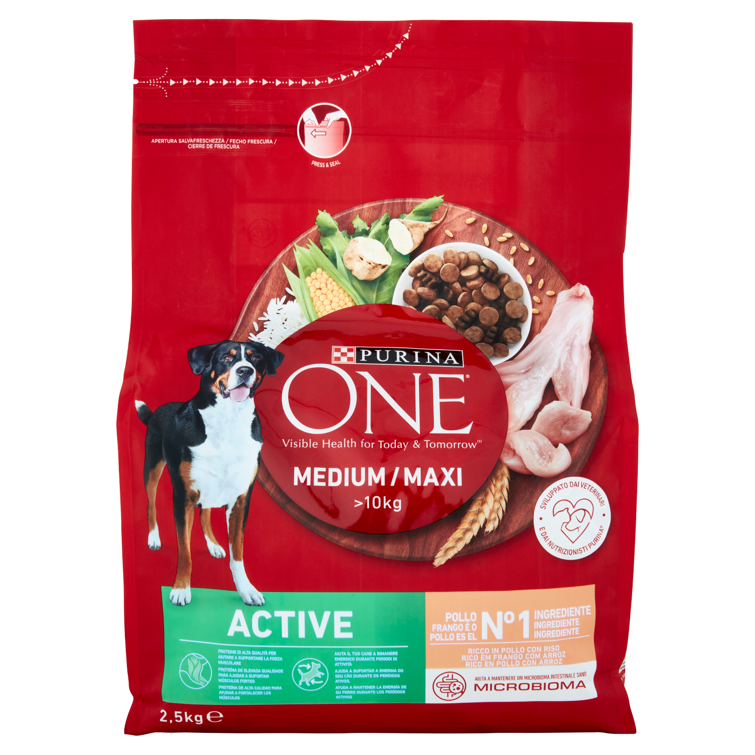 Alimento completo per cani adulti di taglia media e grande La polpa di barbabietola da zucchero aiuta a mantenere il microbioma intestinale sano, essenziale per la buona salute del tuo cane Senza coloranti, aromi artificiali e conservanti artificiali aggiunti Proteine di alta qualità per aiutare a supportare la forza muscolare Con alti livelli di proteine e grassi per aiutare il tuo cane a rimanere energico durante periodi di attività Con alti livelli di vitamine E e C per aiutare a supportare difese naturali forti Altamente digeribile grazie a ingredienti di alta qualità Sviluppato dai veterinari e dai nutrizionisti PURINA PURINA ONE ⁽ ⁾Salute visibile oggi e domani Sviluppato dagli esperti Purina, PURINA ONE Medium/Maxi >10kg Active offre una nutrizione avanzata specificamente formulata per i bisogni del tuo cane di media e grande taglia. Preparato con Pollo come primo ingrediente, offre una combinazione gustosa di morbidi deliziosi bocconi e crocchette fragranti, con alti livelli di proteine e grassi per aiutare il tuo cane a rimanere energico durante periodi di attività. La nutrizione avanzata e specifica di PURINA ONE aiuta a mantenere un microbioma intestinale sano, essenziale per la buona salute del tuo cane. L'equilibrio dei microorganismi è importante per garantire un effetto positivo sulla salute digestiva del tuo cane, sulle sue difese naturali e sul suo benessere generale. La polpa di barbabietola da zucchero contenuta nella ricetta aiuta a supportare l'equilibrio del microbioma intestinale, mantenendo il tuo cane sano e in forma ogni giorno. Prova la gamma PURINA ONE Medium/Maxi > 10kg per apprezzare risultati visibili sul suo benessere. - Apertura salvafreschezza - Press & seal - >10kg - Sviluppato dai veterinari e dai nutrizionisti PURINA - Proteine di alta qualità per aiutare a supportare la forza muscolare - Aiuta il tuo cane a rimanere energico durante periodi di attività - Pollo n° 1 ingrediente - Aiuta a mantenere un microbioma intestinale sano