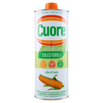 Olio Cuore è speciale perché Contiene Vitamina E che contribuisce alla protezione delle cellule dallo stress ossidativo e B6 che contribuisce alla normale funzione del sistema immunitario e alla riduzione della stanchezza e dell'affaticamento. Naturalmente ricco di Polinsaturi (Omega 6), fra cui l'Acido Linoleico. Ottenuto dal Cuore del Chicco di Mais che contiene steroli vegetali. Gusto leggero e delicato ideale in cottura e come condimento a crudo per esaltare il sapore di tutti i tuoi piatti. Utilizzalo nelle tue ricette anche al posto del burro. I vantaggi della latta Scegliamo da sempra la latta perché garantisce la protezione assoluta dalla luce evitando l'ossidazione e si ricicla all'infinito. Sostenibilità Nei nostri stabilimenti utilizziamo energia elettrica proveniente da fonti rinnovabili. Una porzione da 10 g di Olio Cuore contiene 5,4 g di acido linoleico. L'effetto benefico si ottiene con l'assunzione giornaliera di 10 g di acido linoleico. 100 g di prodotto contengono 800 mg di steroli vegetali Segui sempre una dieta varia ed equilibrata e uno stile di vita sano.