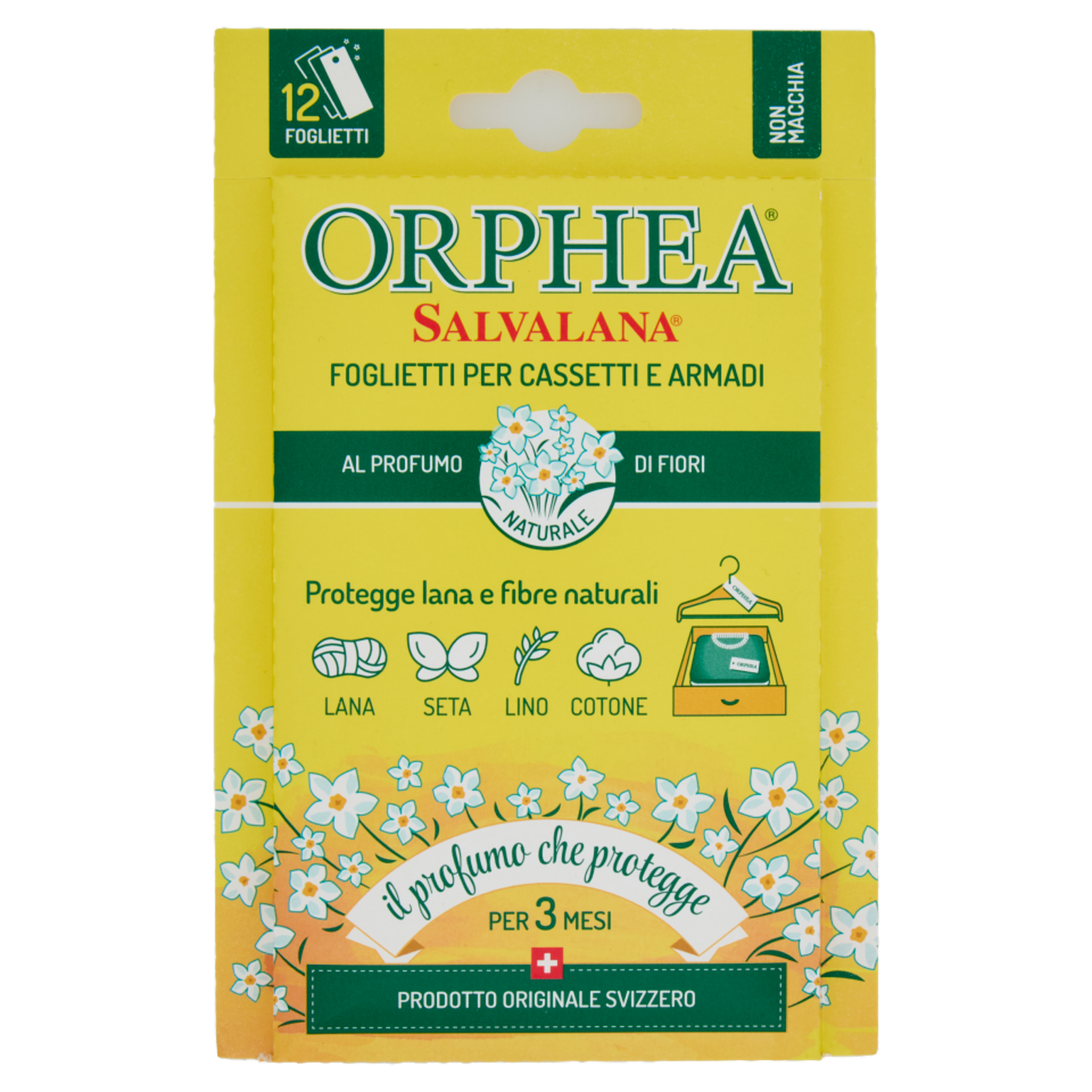 Prova le altre profumazioni Fiori - Lavanda - Legno di cedro - Chiodi di garofano - Patchuouli Cura e proteggi i tessuti tutto l'anno con i prodotti Orphea Pulizia armadi - Detergenza e protezione bucato Scopri tutta la gamma, entra nel mondo Orphea su www.orphea.it Bioforest L'impegno ecologico di Orphea Salvalana Astuccio in carta riciclata.