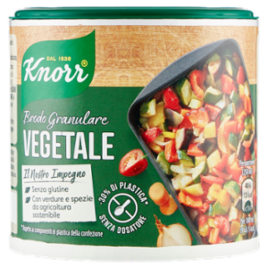Senza lattosio Con pochi grassi Abbiamo rimosso il dosatore usa e getta per ridurre del 30 % le componenti in plastica di questa confezione. Puoi usare un cucchiaino per dosare Brodo Granulare Knorr! Un cucchiaino colmo di Granulare Knorr = 1 Dado