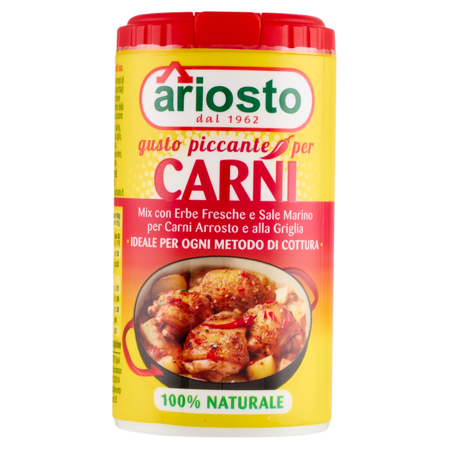 Agitare sempre prima dell'uso. Usalo così: Per polli e arrosti di Kg 1 usare circa 20 g (2 cucchiai) di Ariosto cospargendolo bene sulla superficie e nell'interno della carne prima di mettere a cuocere. Non usare sale perchè Ariosto è già salato