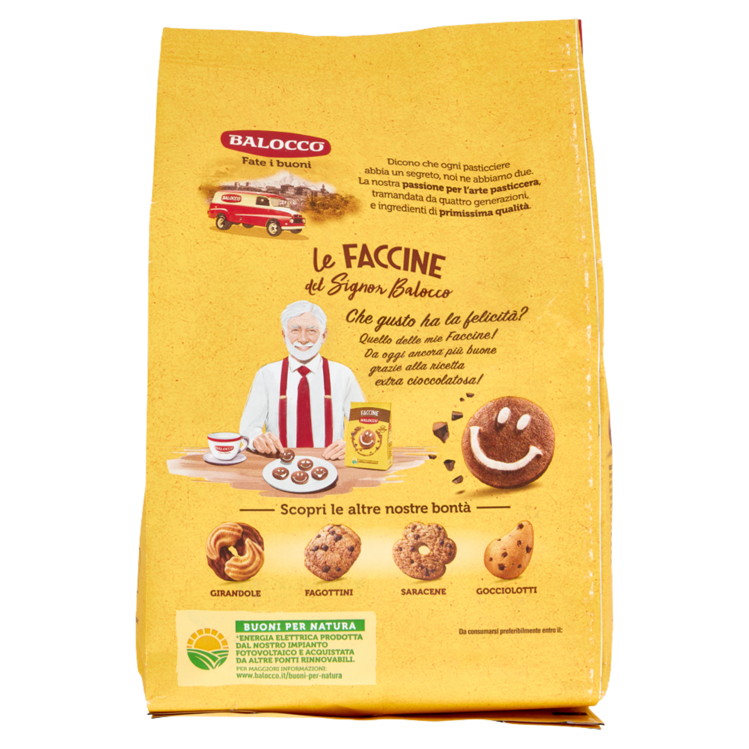 Nel Paese del Signor Balocco facciamo i buoni ogni giorno Scegliamo con cura gli ingredienti, come il cioccolato, golosa fonte di energia Usiamo energia pulita, prodotta dal nostro impianto fotovoltaico Ci impegniamo per aiutare l'ambiente, adoperando incarti riciclabili Parti con energia! Tutta la carica e la golosità di Gocciolotti e Girandole. Provale! scopri di più su www.balocco.it Seguici su: Facebook, Instagram, YouTube