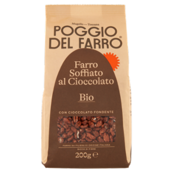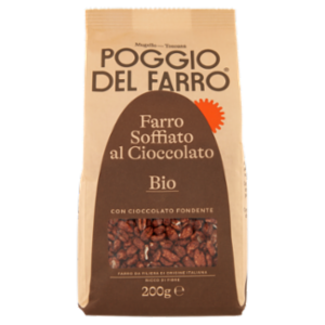 Croccanti chicchi di Farro semplicemente soffiati e ricoperti con Cioccolato fondente. Personalizza la tua bowl Al naturale 25g di Farro Soffiato Bio 200ml di latte o bevanda vegetale 1 cucchiaino di miele 3 fragole o un frutto di stagione Carica di energia Frulla in un mixer: banana congelata, 1 vasetto di yogurt, 1 cucchiaino di miele, 2 cucchiai di latte o bevanda vegetale. Aggiungi il topping: 25g di Farro Soffiato Bio Ricca di vitalità Mescola 100g di frutti rossi con 4 cucchiai di succo di arancia e lascia riposare 10 minuti. Aggiungi: 150g di yogurt e 25g di Farro Soffiato Bio