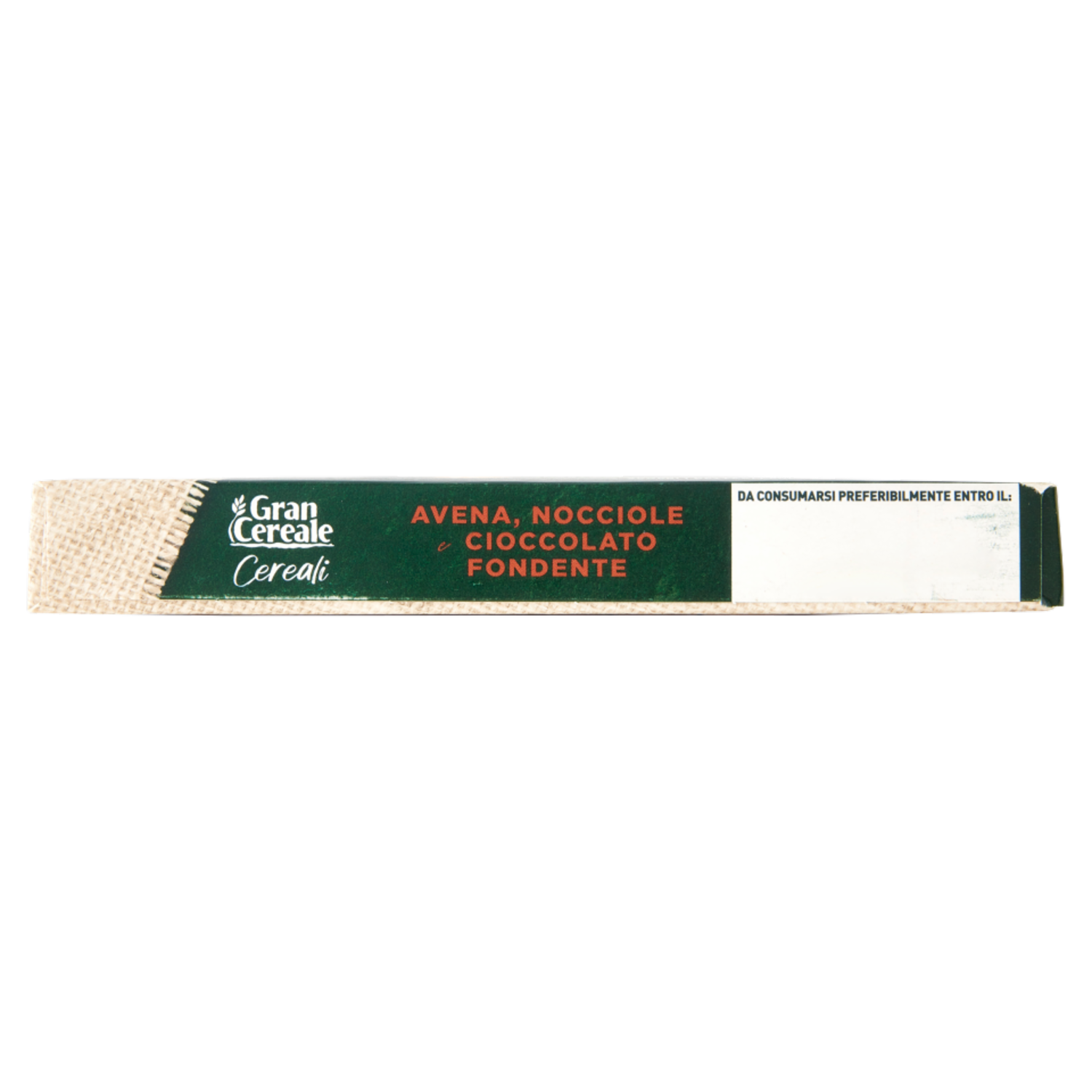 Barretta di cereali con avena, frumento integrale, nocciole e cioccolato fondente