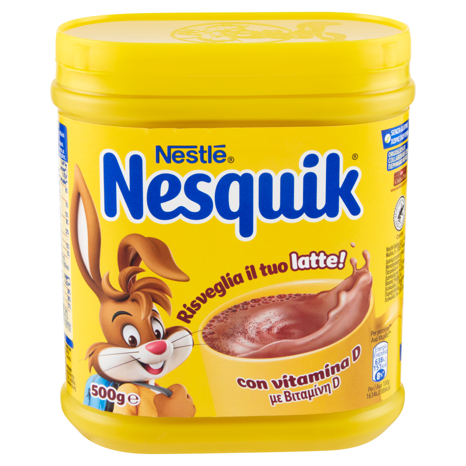 con delizioso cacao e vitamina D nutriente essenziale che contribuisce alla normale funzione del sistema immunitario e all'assorbimento del calcio e del fosforo. Scopri di più su www.nesquik.it Segui una dieta varia ed equilibrata e uno stile di vita sano. Il nostro cacao è buono e fa anche del bene*. *Con Nestlé Cocoa Plan e Rainforest Alliance, aiutiamo a migliorare la vita dei coltivatori di cacao e delle loro famiglie. Cacao da fonti sostenibili - Senza glutine - Risveglia il tuo latte! - Con vitamina D