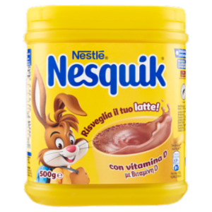 con delizioso cacao e vitamina D nutriente essenziale che contribuisce alla normale funzione del sistema immunitario e all'assorbimento del calcio e del fosforo. Scopri di più su www.nesquik.it Segui una dieta varia ed equilibrata e uno stile di vita sano. Il nostro cacao è buono e fa anche del bene*. *Con Nestlé Cocoa Plan e Rainforest Alliance, aiutiamo a migliorare la vita dei coltivatori di cacao e delle loro famiglie. Cacao da fonti sostenibili - Senza glutine - Risveglia il tuo latte! - Con vitamina D