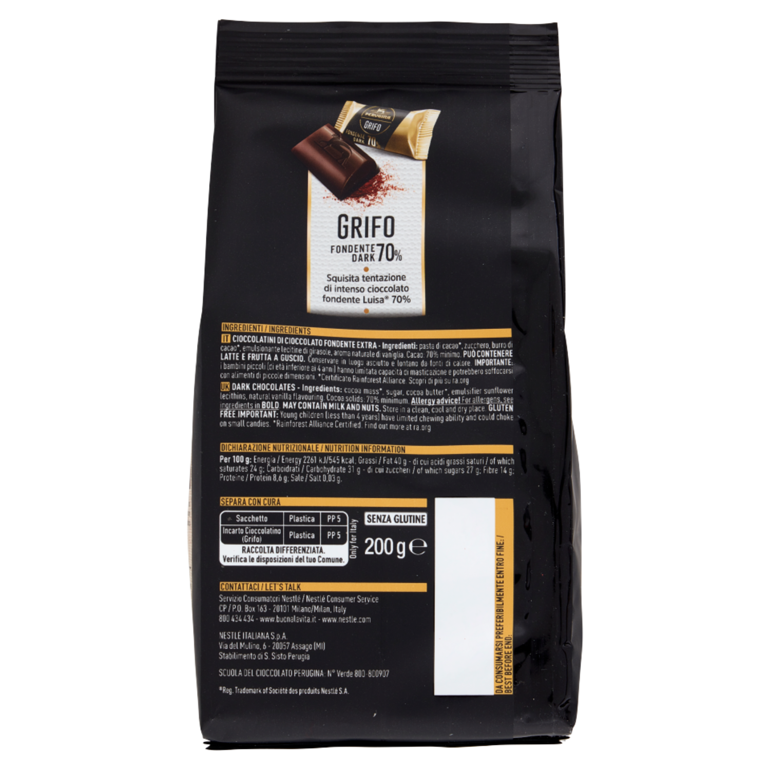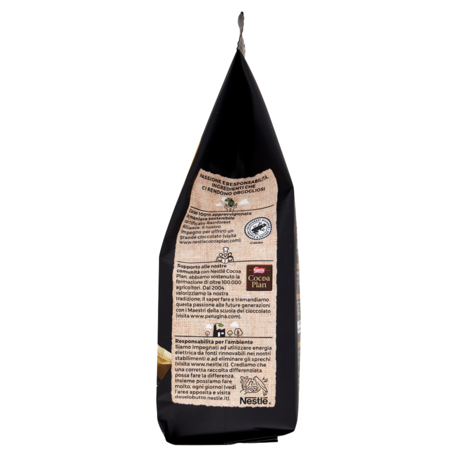 PERUGINA dal 1907 Passione e responsabilità, ingredienti che ci rendono orgogliosi Cacao 100% approvvigionato in maniera sostenibile certificato Rainforest Alliance. Il nostro impegno per offrirti un grande cioccolato (visita www.nestlecocoaplan.com). Supporto alle nostre comunità con Nestlé Cocoa Plan, abbiamo sostenuto la formazione di oltre 100.000 agricoltori. Dal 2004 valorizziamo la nostra tradizione, il saper fare e tramandiamo questa passione alle future generazioni con i Maestri della scuola del cioccolato (visita www.perugina.com). Responsabilità per l'ambiente Siamo impegnati ad utilizzare energia elettrica da fonti rinnovabili nei nostri stabilimenti e ad eliminare gli sprechi (visita www.nestle.it). Crediamo che una corretta raccolta differenziata possa fare la differenza. Insieme possiamo fare molto, ogni giorno! (vedi l'area apposita e visita dovelobutto.nestle.it). Scuola del Cioccolato Perugina: N° Verde 800-800907