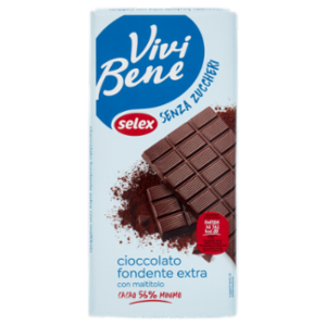 Cioccolato fondente extra (cacao: 56% minimo) senza zuccheri, con edulcorante
