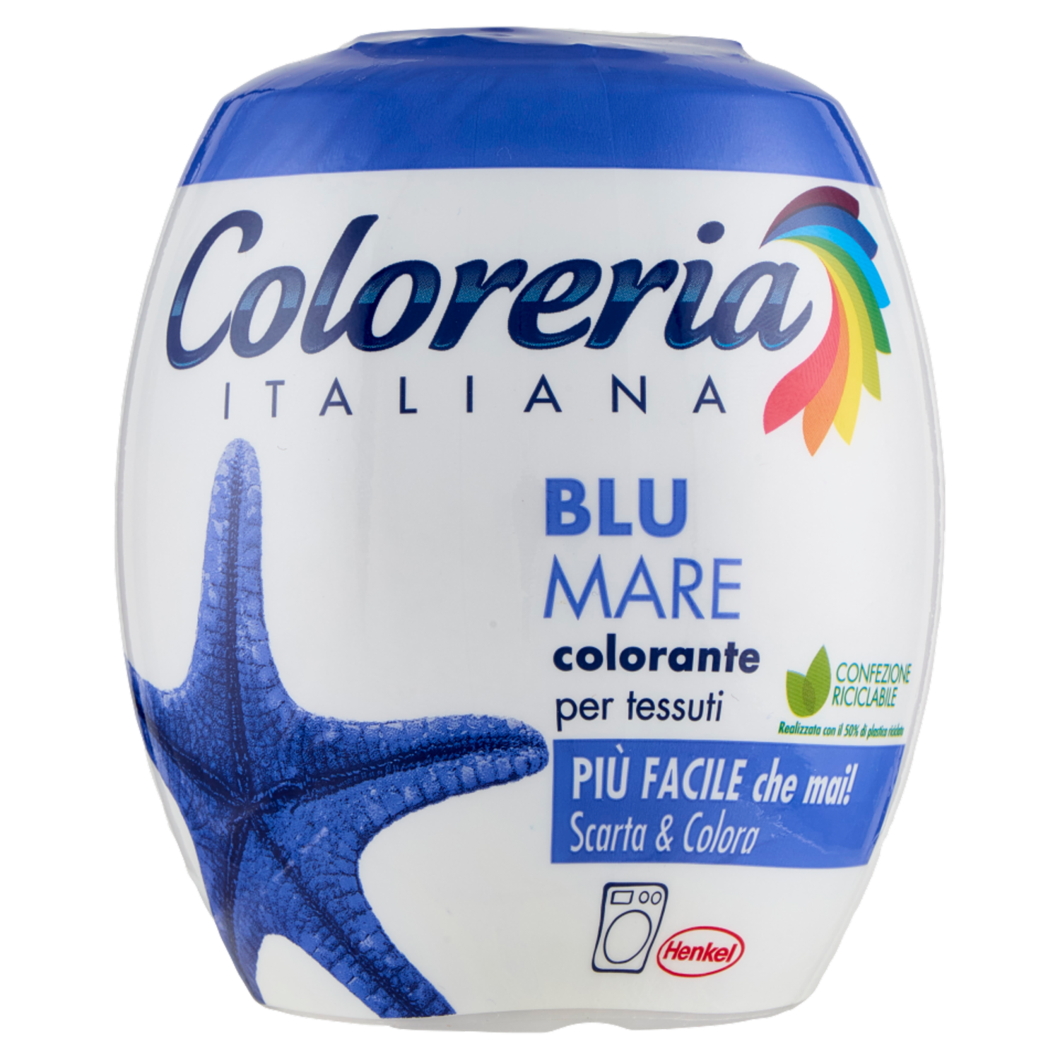 Colori intensi, ancora più facilmente! La nuova Coloreria Italiana: il colorante per tessuti più facile di sempre! Grazie alla nuova confezione pronta all'uso e alla formula tutto in 1, ravvivare o cambiare il colore dei capi e dell'arredamento è semplicissimo: scarta la pellicola di plastica ed inserisci la confezione direttamente nel cestello assieme ai tessuti da tingere... colori intensi e brillanti, zero fatica!