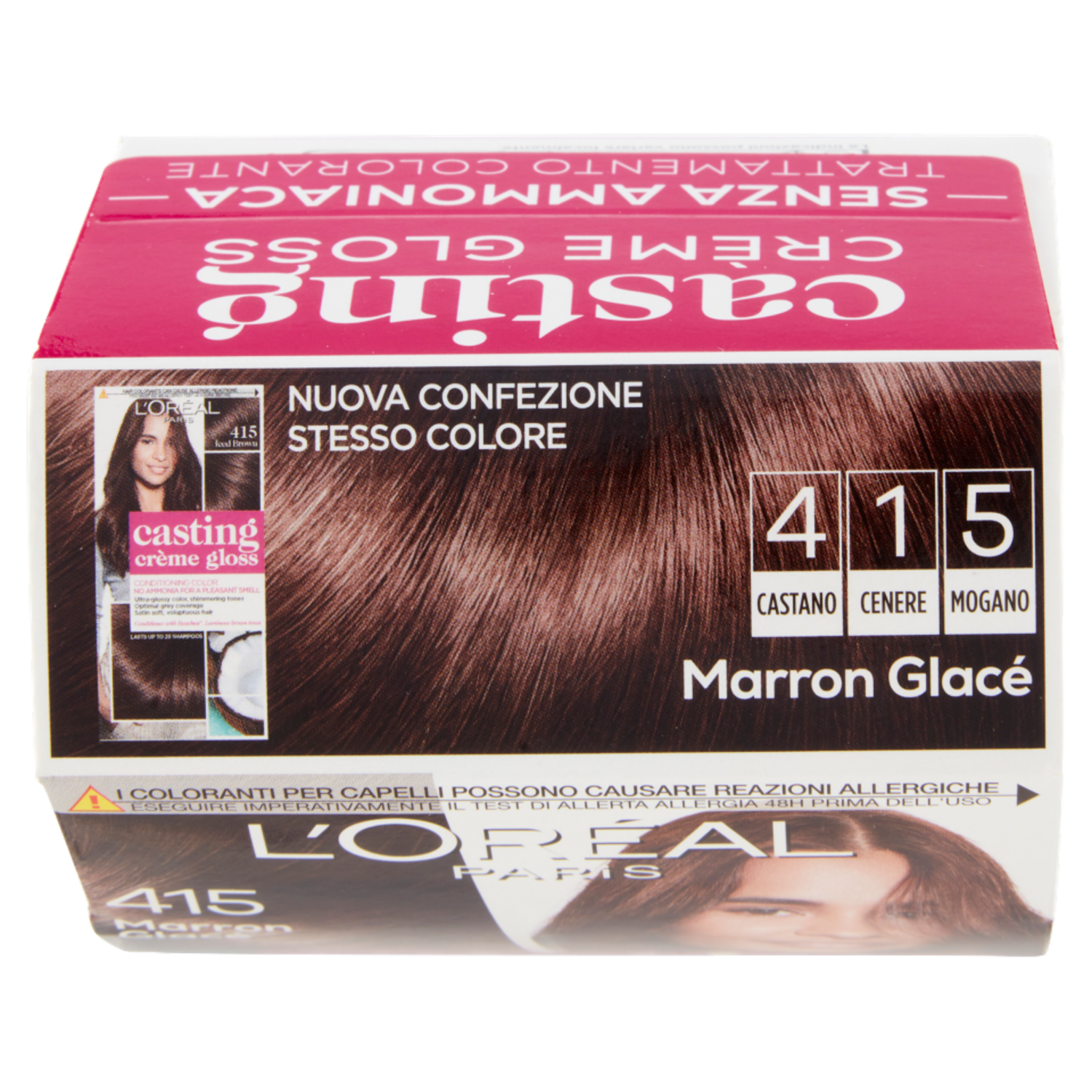 1. Colore ultra-glossy, risultato naturale La sua formula cremosa copre ottimamente i primi capelli bianchi per un colore intenso, estremamente naturale e ricco di riflessi brillanti. I tuoi capelli appariranno visibilmente più belli e straordinariamente luminosi. Il colore dura fino a 28 shampoo. 2. Nutrimento Profondo Crema colorante senza ammoniaca Trattamento al Miele Dopo la colorazione, il trattamento nutriente arricchito con miele illumina il tuo colore ed esalta la bellezza dei riflessi. I tuoi capelli saranno morbidi, setosi e dal look irresistibilmente glossy. 3. È la tua prima colorazione? La nostra colorazione è facile da utilizzare, anche se è la tua prima volta** **Leggere attentamente il foglio di istruzioni
