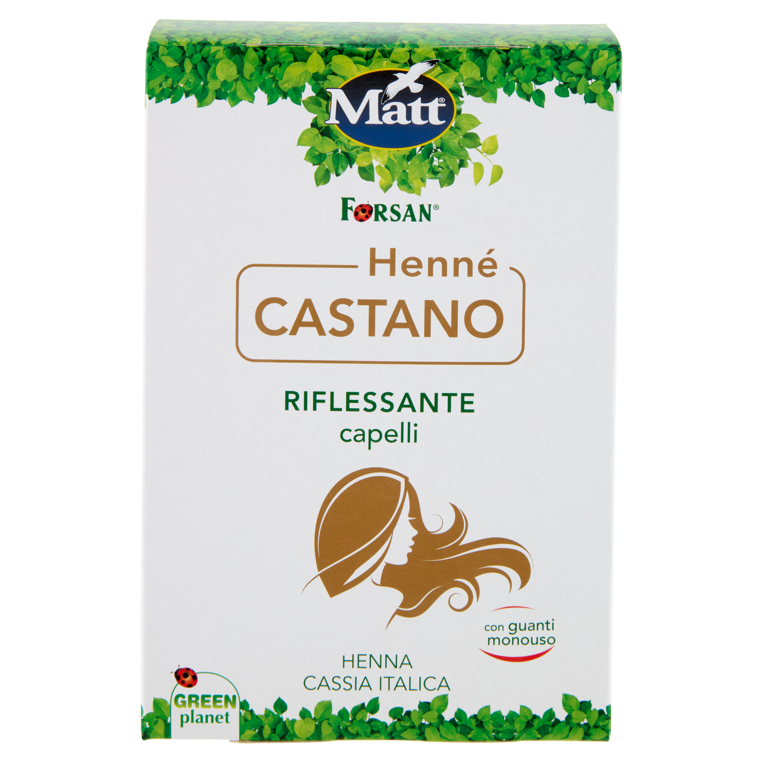 Gli Henné sono piante conosciute fin dall'antichità come coloranti naturali e sono tradizionalmente indicate nella letteratura erboristica per tingere i capelli, rafforzarli e mantenerli sani. Gli Henné agiscono sulla superficie esterna dei capelli, creando una guaina che li protegge dagli agenti esterni rendendoli più resistenti e visibilmente luminosi. Henné Castano Matt, a base di Henna e Cassia Italica, dona ai capelli riflessi castani. Nei capelli chiari risalta la loro tonalità con riflessi castano dorato o ramati, nei capelli scuri rende la naturale tonalità più brillante. Può essere utile per coprire i capelli bianchi o grigi. Green planet Henné Castano Matt è Green Planet perché: - con coloranti vegetali - nessun ingrediente di origine animale, adatto ai vegani - con cartoncino riciclato - con cartoncino proveniente da foreste gestite responsabilmente - con cartoncino privo di cloro - sostiene il progetto Treedom Con coloranti vegetali Dermatologicamente testato