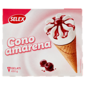 Gelato al gusto di vaniglia variegato all'amarena 16% con cialda e ciliegia candita