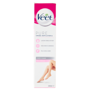Scopri la crema Veet Pure: La nostra formula più pura, con un numero ridotto di ingredienti*, ideata per donarti una pelle liscia a lungo. Il nostro odore più puro: senza odore di ammoniaca. *con minor numero di ingredienti rispetto a tutte le precedenti formule di Creme Veet Dermatologicamente testato