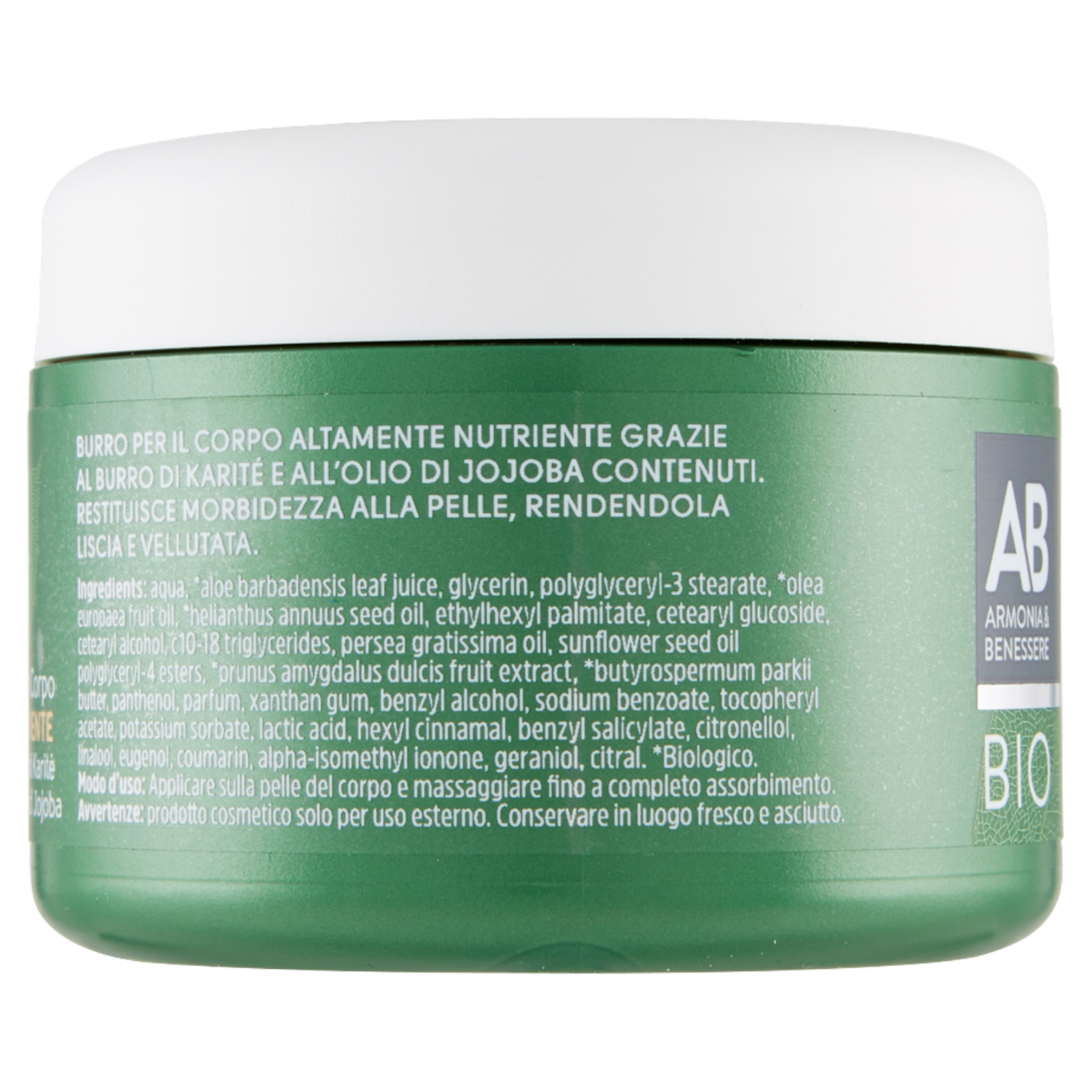 Burro per il corpo altamente nutriente grazie al burro di karité e all'olio di jojoba contenuti. Restituisce morbidezza alla pelle, rendendola liscia e vellutata.