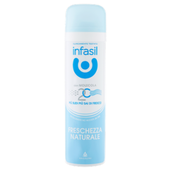 Dai Laboratori Farmaceutici Angelini la generazione di deodoranti con Molecola 2C, Betaciclodestrina, una straordinaria tecnologia che non copre gli odori, ma li assorbe, rilasciando una fresca fragranza. La formula di Infasil Freschezza Naturale è sviluppata per offrire un'efficace regolazione della traspirazione ed un'immediata sensazione di freschezza. Più sudi più sai di fresco! - Efficacia antiodore clinicamente testata per 24 ore. - La sua formula con emollienti rispetta la delicatezza della tua pelle. - No alcool.