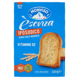 Monviso èSenza, ma con gusto Riduzione consumo di sodio + Vitamina D2 = La tua scelta di benessere Ipodosico con vitamina D2 - Nella ricetta il sale non è aggiunto, ma è naturalmente presente negli ingredienti che la compongono. La riduzione del consumo di sodio contribuisce al mantenimento di una normale pressione sanguigna mentre la vitamina D2 contribuisce al mantenimento della normale funzione muscolare e del sistema immunitario. Monviso ama la natura Confezione con -49% di plastica* *rispetto al precedente confezionamento in flow pack Confezione esterna in carta certificata FSC Il materiale di origine forestale in questo prodotto è riciclato. L'etichetta FSC garantisce un uso responsabile delle risorse forestali del mondo.