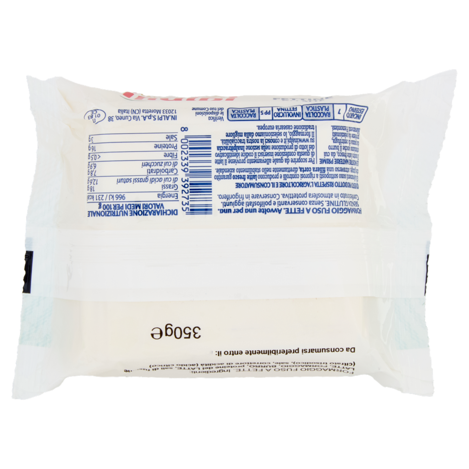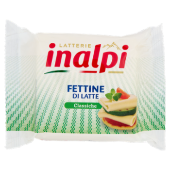 Formaggio fuso a fette Avvolte una per una Senza glutine. Senza conservanti e polifosfati aggiunti. Questo prodotto rispetta l'agricoltore e il consumatore Gli allevamenti sono sottoposti a rigorosi controlli e producono latte fresco garantito che giunge, attraverso una filiera corta, direttamente nello stabilimento aziendale. Le nostre materie prime Il nostro latte fresco, da cui otteniamo anche il burro da panna di centrifuga, proviene da selezionati allevamenti Piemontesi. Per scoprire da quale allevamento proviene il latte di questa confezione inserisci il codice identificativo del lotto di produzione nella sezione Inalpitraccia su www.inalpi.it e conosci la nostra tracciabilità. Il formaggio, lo selezioniamo dalla migliore tradizione casearia europea. Le nostre fettine di latte sono buone e realizzate con latte fresco italiano e selezionati formaggi europei. Conoscici meglio su www.inalpi.it