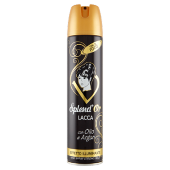 La Lacca Splend'Or Forte Effetto Illuminante aiuta i tuoi capelli a ritrovare la loro naturale luminosità. La sua formula, arricchita con Olio di Argan, rende la chioma setosa e brillante, senza appesantirla e assicurando un fissaggio forte e a lunga durata.