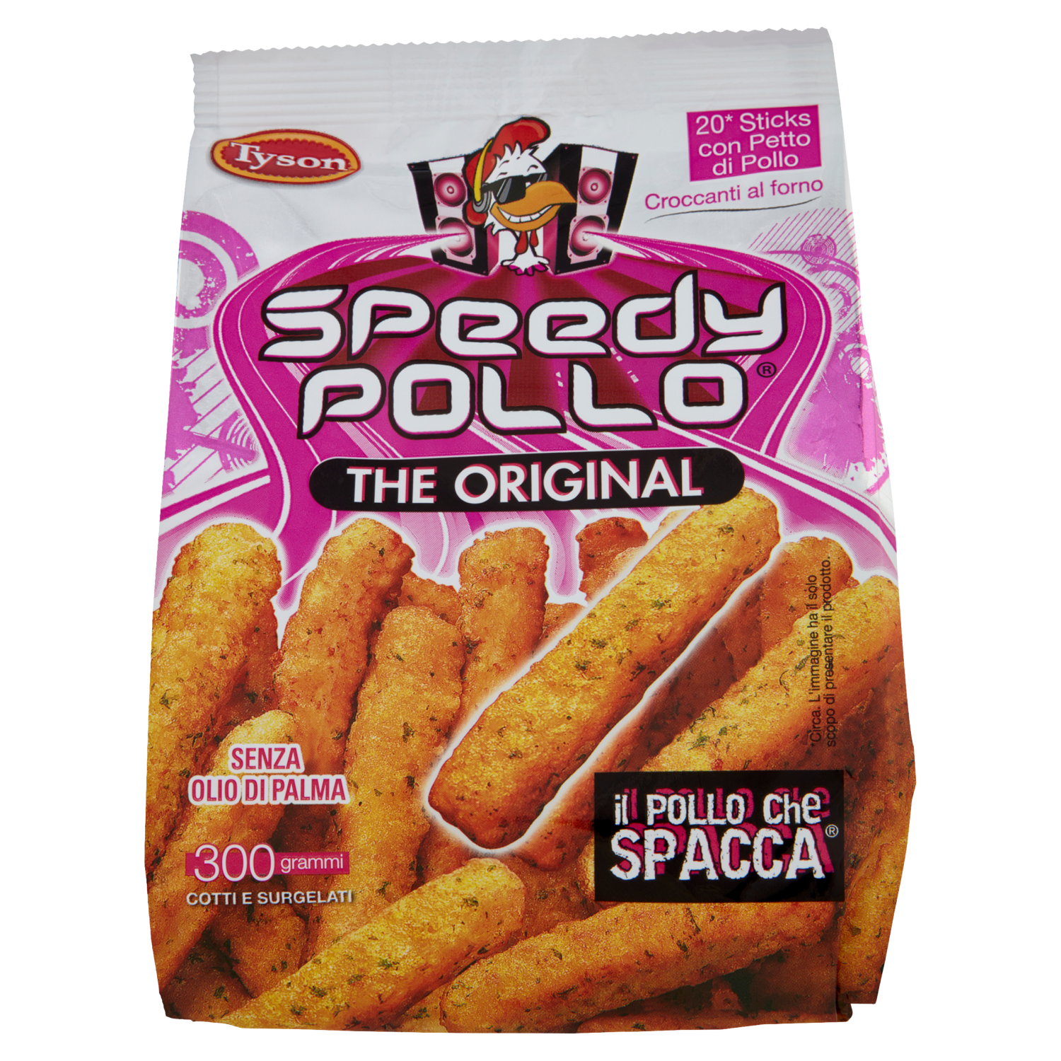 Speedy Pollo The Original Preparazione alimentare a base di petto di pollo, costituita da parti di carne, pastellata, cotta e surgelata. Prodotto cotto ad una temperatura a cuore di almeno 70°C Senza carne separata meccanicamente
