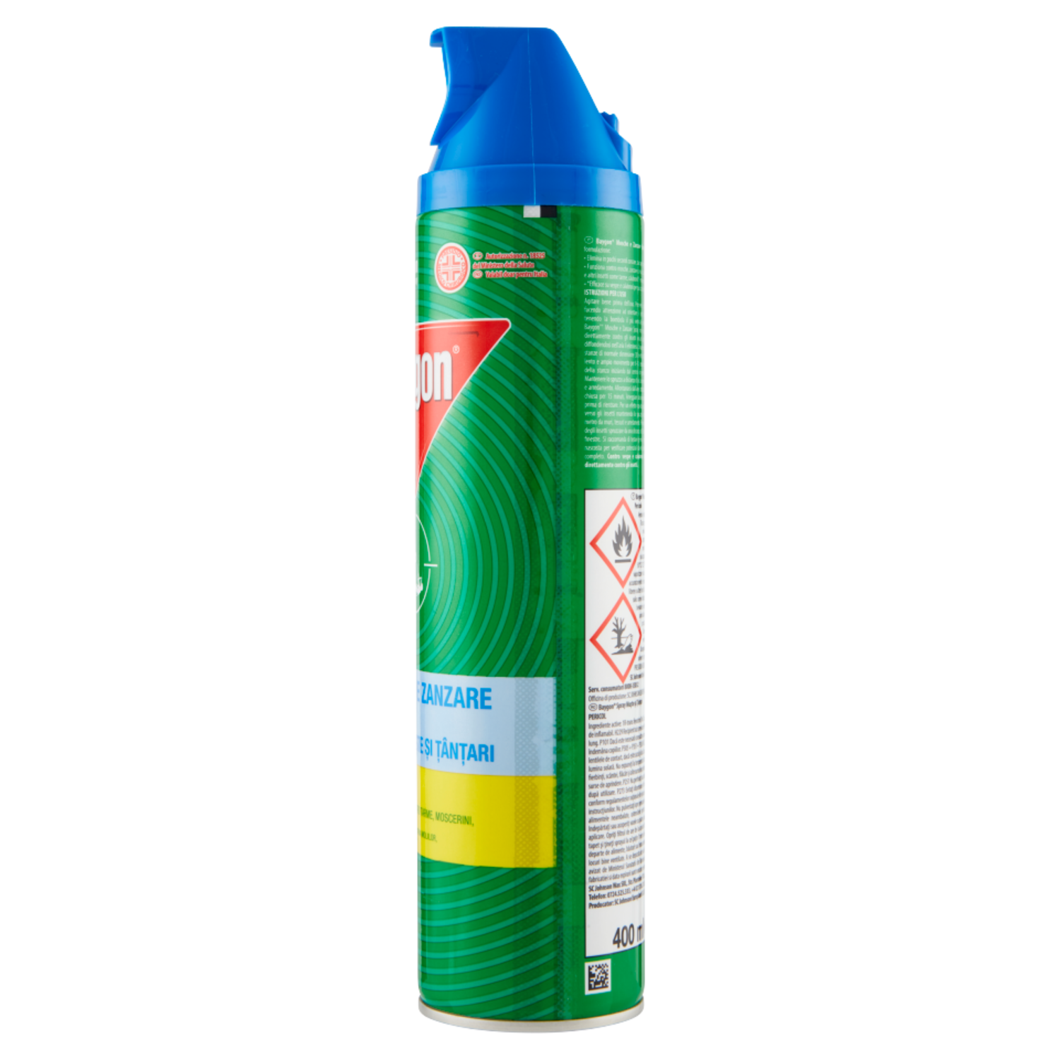 Istruzioni per l'uso Agitare bene prima dell'uso. Premere il pulsante erogatore facendo attenzione ad orientare il getto lontano dal viso e tenendo la bombola il più verticale possibile. Utilizzando Baygon Mosche e Zanzare Spray non è necessario spruzzare direttamente contro gli insetti volanti dato che la formula diffondendosi nell'aria li eliminerà. Chiudere porte e finestre. Per stanze di normale dimensione (30 metri cubi) spruzzare con un lento e ampio movimento per 8-10 secondi verso tutte le aree della stanza iniziando dal centro dirigendosi verso la porta. Mantenere lo spruzzo a distanza di circa un metro da muri, tessuti e arredamento. Allontanarsi dall'area trattata. Lasciare la stanza chiusa per 15 minuti. Arieggiare abbondantemente la stanza prima di rientrare. Per un effetto rapido spruzzare direttamente verso gli insetti mantenendo lo spruzzo a distanza di circa un metro da muri, tessuti e arredamento. Per un azione di controllo degli insetti spruzzare da una distanza di 50 cm attorno a porte e finestre. Si raccomanda di testare prima il prodotto in un'area nascosta per verificare potenziali danni prima del trattamento completo. Contro vespe e calabroni dirigere il getto direttamente contro gli insetti.