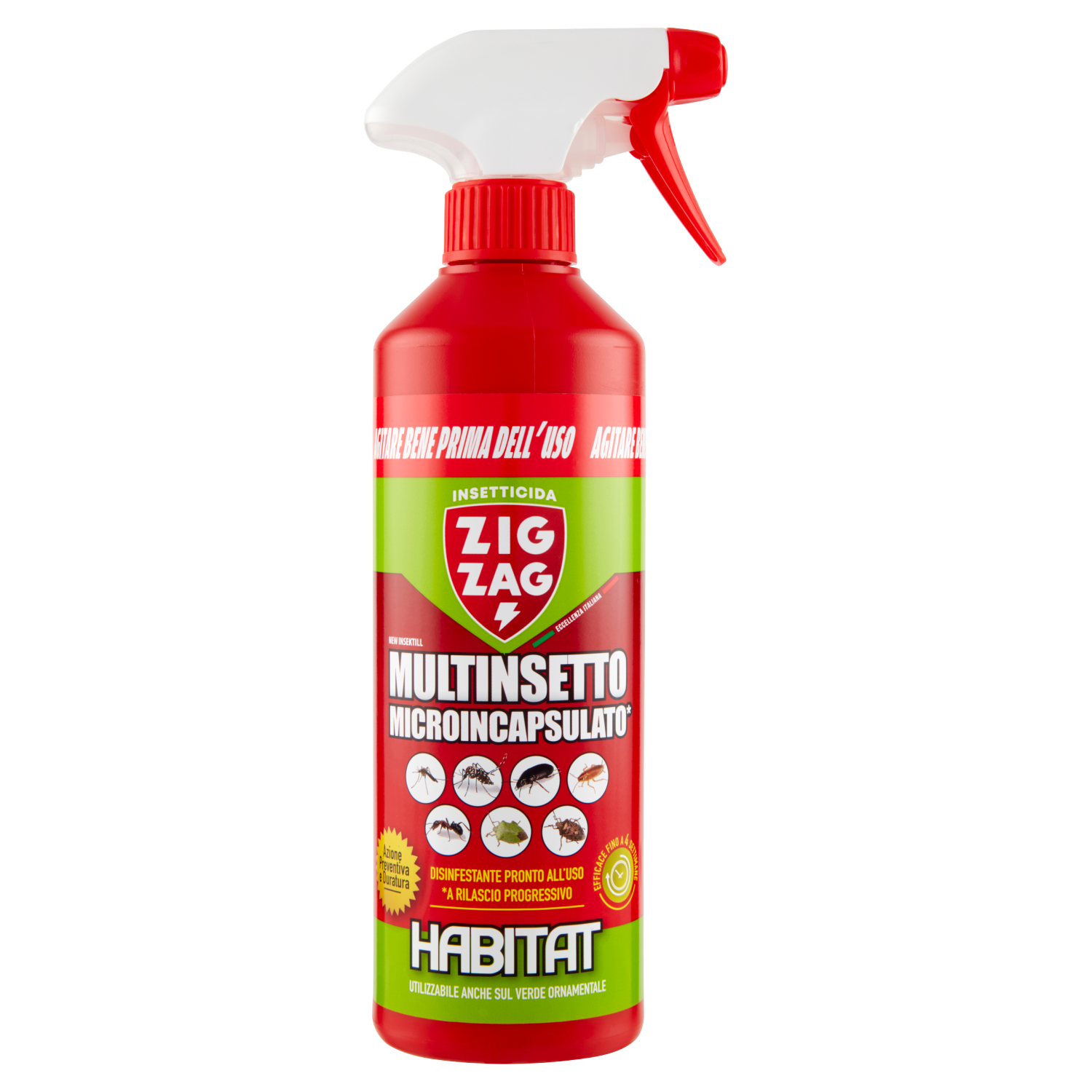 Caratteristiche: New Insektill è un insetticida piretroide pronto all'uso a base di Cipermetrina - libera e microincapsulata - appositamente studiato per conferire una pronta e duratura efficacia nei confronti di insetti particolarmente fastidiosi e rilevanti per l'igiene degli ambienti domestici e civili. Controlla con piena efficacia scarafaggi di medie e grandi dimensioni (Blattella germanica, Periplaneta americana), formiche, cimici verdi e cimici asiatiche, zanzare. La sua azione residuale viene potenziata dal processo di microincapsulazione che, attraverso il meccanismo di lento rilascio della sostanza attiva dalle capsule, permette un'efficacia su tutti gli insetti target fino a 4 settimane per le zanzare e fino a 3 settimane su tutti gli altri insetti target. New Insektill può essere impiegato su superfici porose e non porose all'interno ed intorno agli edifici (abitazioni private, fabbricanti rurali, civili ed industriali, aree industriali, magazzini, aree civili, ospedali, caserme) per l'eliminazione delle cimici e degli insetti striscianti; può inoltre essere applicato sul verde ornamentale (es. siepi, cespugli, prati) e nelle sue vicinanze, come ad esempio pareti con rampicanti, per il controllo delle zanzare che si annidano nella vegetazione.