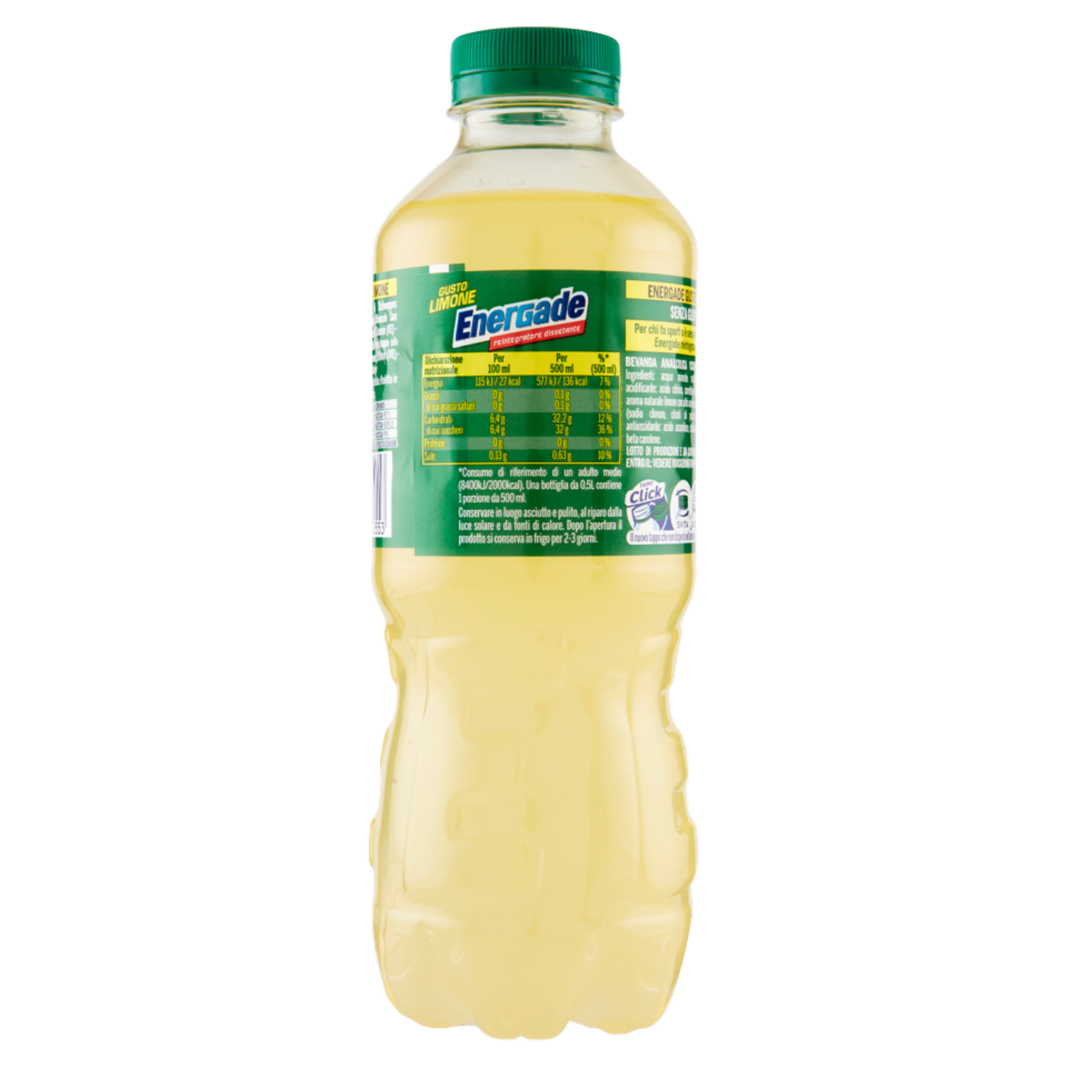 Energade gusto limone Senza glutine Per chi fa sport o è sempre in movimento Energade reintegra e disseta. Tappo Click Svita - Blocca - Bevi Il nuovo tappo che non disperdi nell'ambiente (Dir. UE 2019/904, art.6)
