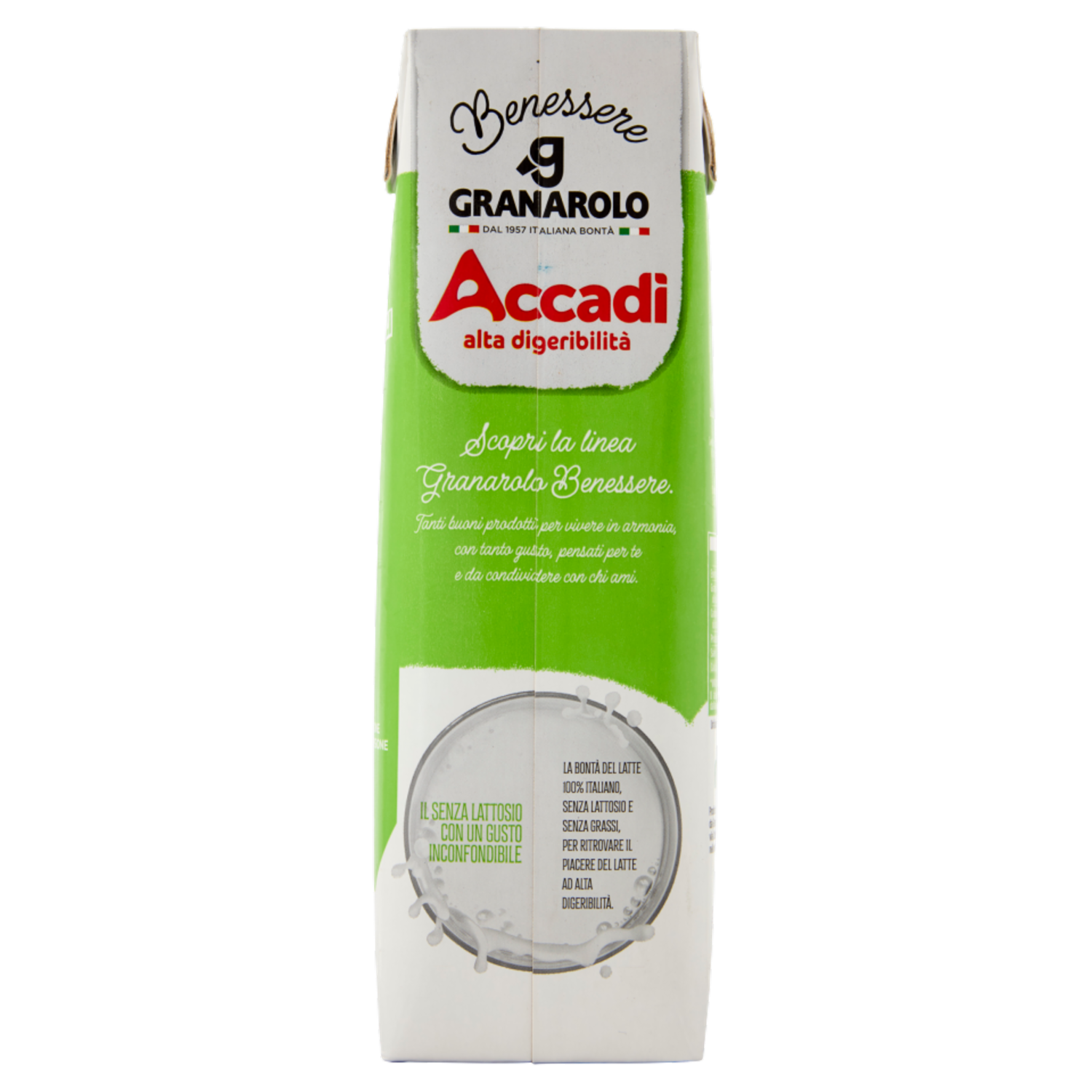 Il Calcio, di cui il latte è una fonte naturale, è necessario per il mantenimento delle ossa e dei denti normali. Il senza lattosio con un gusto tutto nuovo La bontà del latte 100% italiano, senza lattosio e senza grassi, per ritrovare il piacere del latte ad alta digeribilità. Nuova confezione #Bontàresponsabile Questo è uno dei progetti che compongono #Bontà Responsabile, il nostro impegno per un futuro più buono. Scoprili tutti su www.granarolo.it Questa confezione è composta per l'87% da materie prime rinnovabili perchè tappo e strati protettivi sono fatti con plastica proveniente dalla canna da zucchero. -20% di CO₂ verso la stessa confezione fatta con materiali convenzionali. Mentre cresce la canna da zucchero assorbe CO₂; la produzione della plastica da canna da zucchero emette meno CO₂ rispetto a quella della plastica fossile. Un'alimentazione varia ed equilibrata e uno stile di vita sano ti aiutano a vivere meglio.