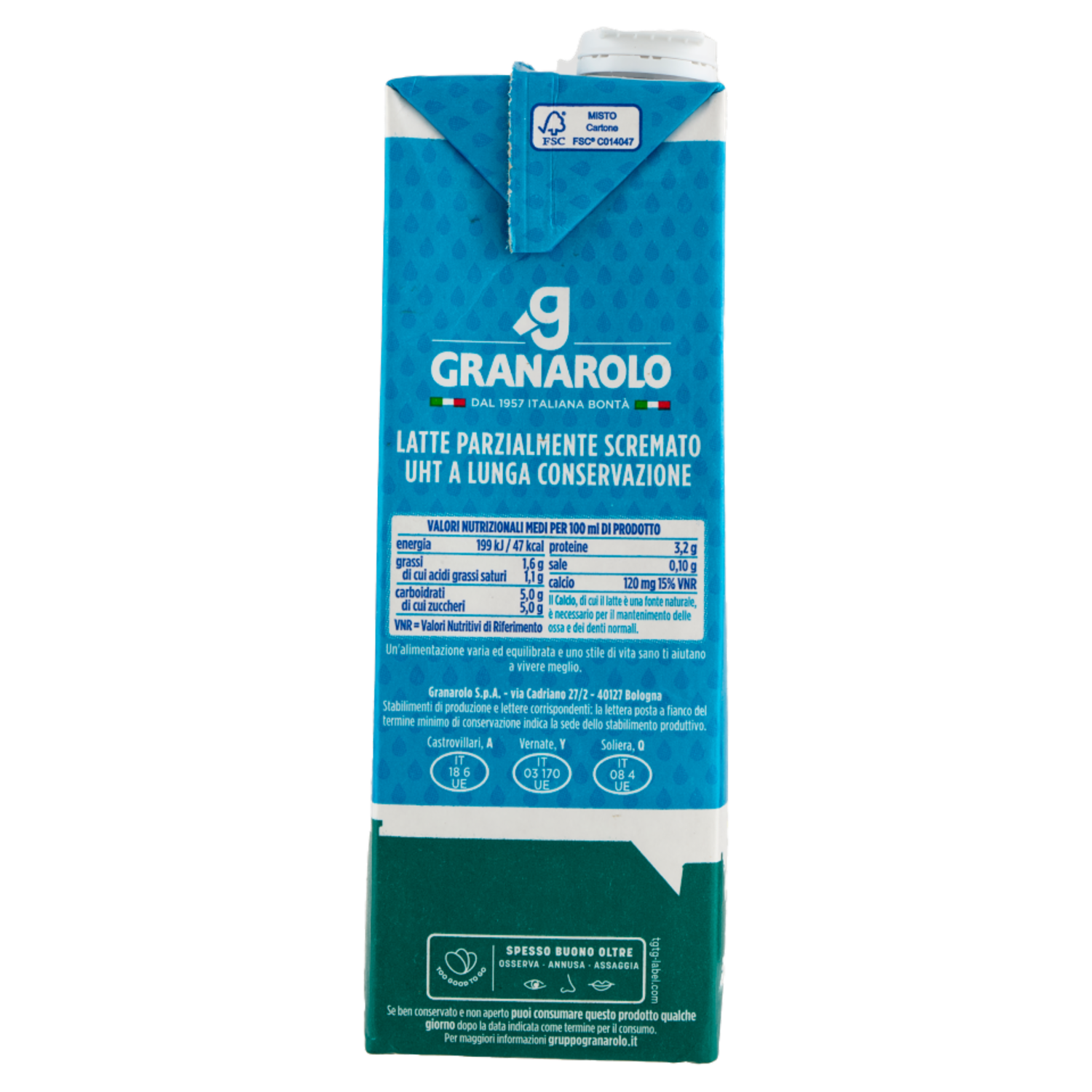 Granarolo S.p.A. via Cadriano 27/2 40127 Bologna Stabilimenti di produzione e lettere corrispondenti: la lettera posta a fianco del termine minimo di conservazione indica la sede dello stabilimento produttivo Castrovillari, A Bollo CE IT 18 6 CE Vernate, Y Bollo CE IT 03 170 CE Soliera, Q Bollo CE IT 08 4 CE
