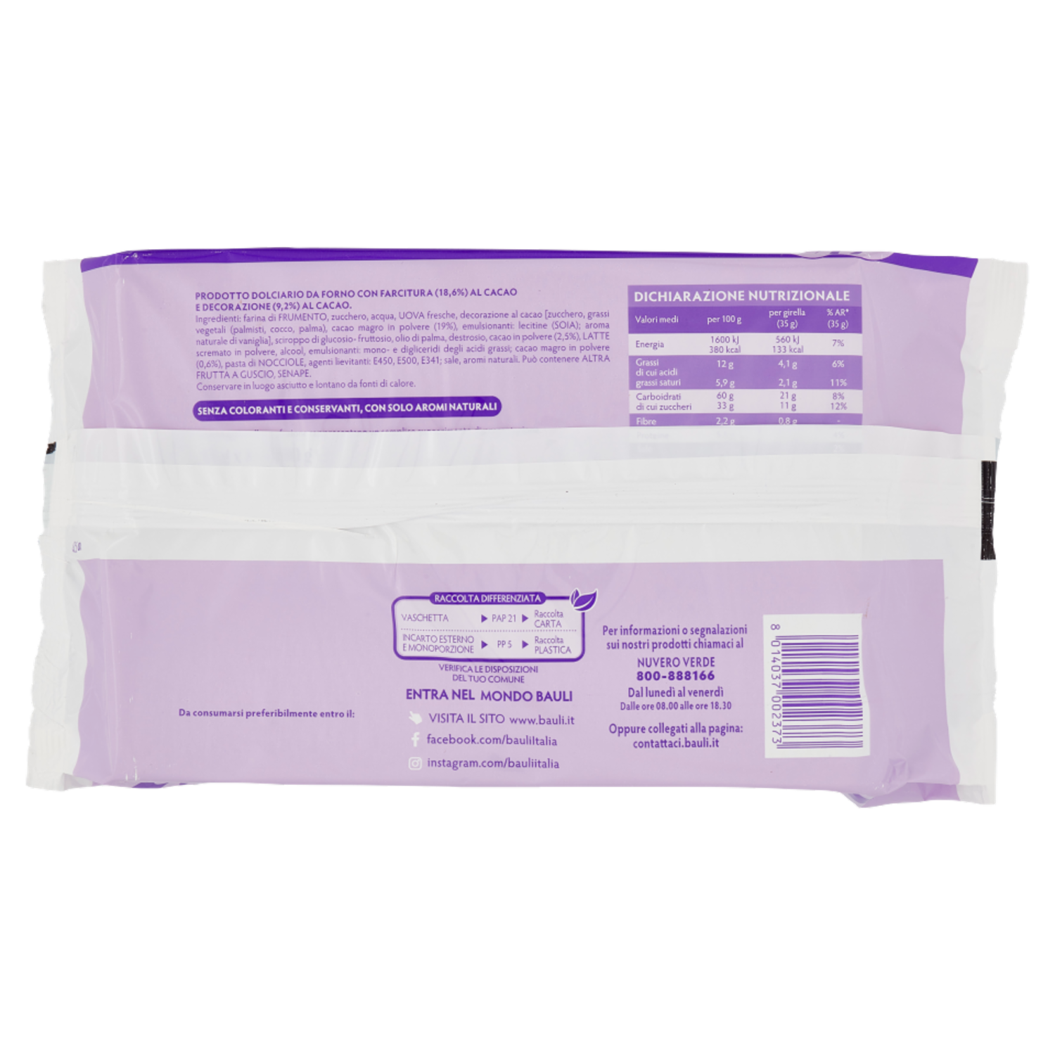 Per informazioni o segnalazioni sui nostri prodotti chiamaci al Numero Verde 800-888166 Dal lunedì al venerdì Dalle ore 08.00 alle ore 18.30 Oppure collegati alla pagina: contattaci.bauli.it Bauli S.p.A. Via Verdi, 31 37060 Castel d'Azzano (VR) Italia